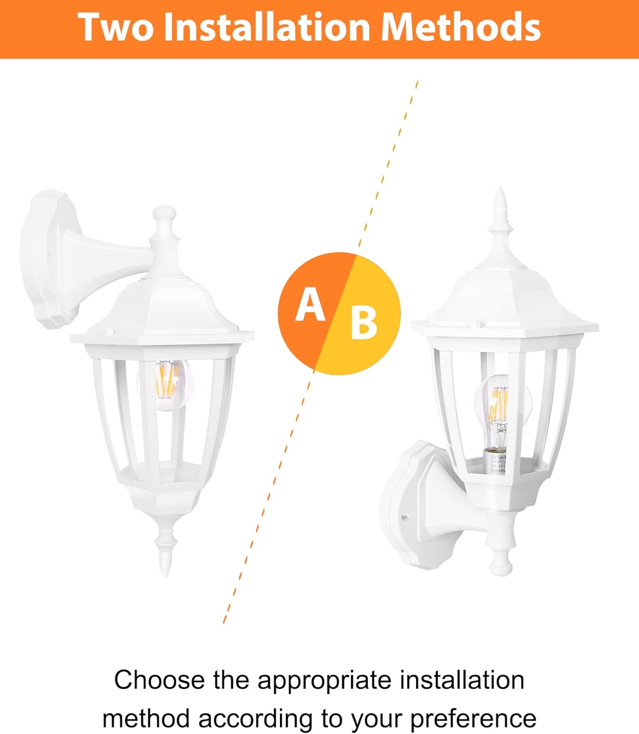 - Two Installation Methods: Choose between upward or downward light output by rotating the lantern during installation. This flexibility allows you to tailor the illumination direction based on your space’s needs—perfect for highlighting steps, walkways, or architectural details.