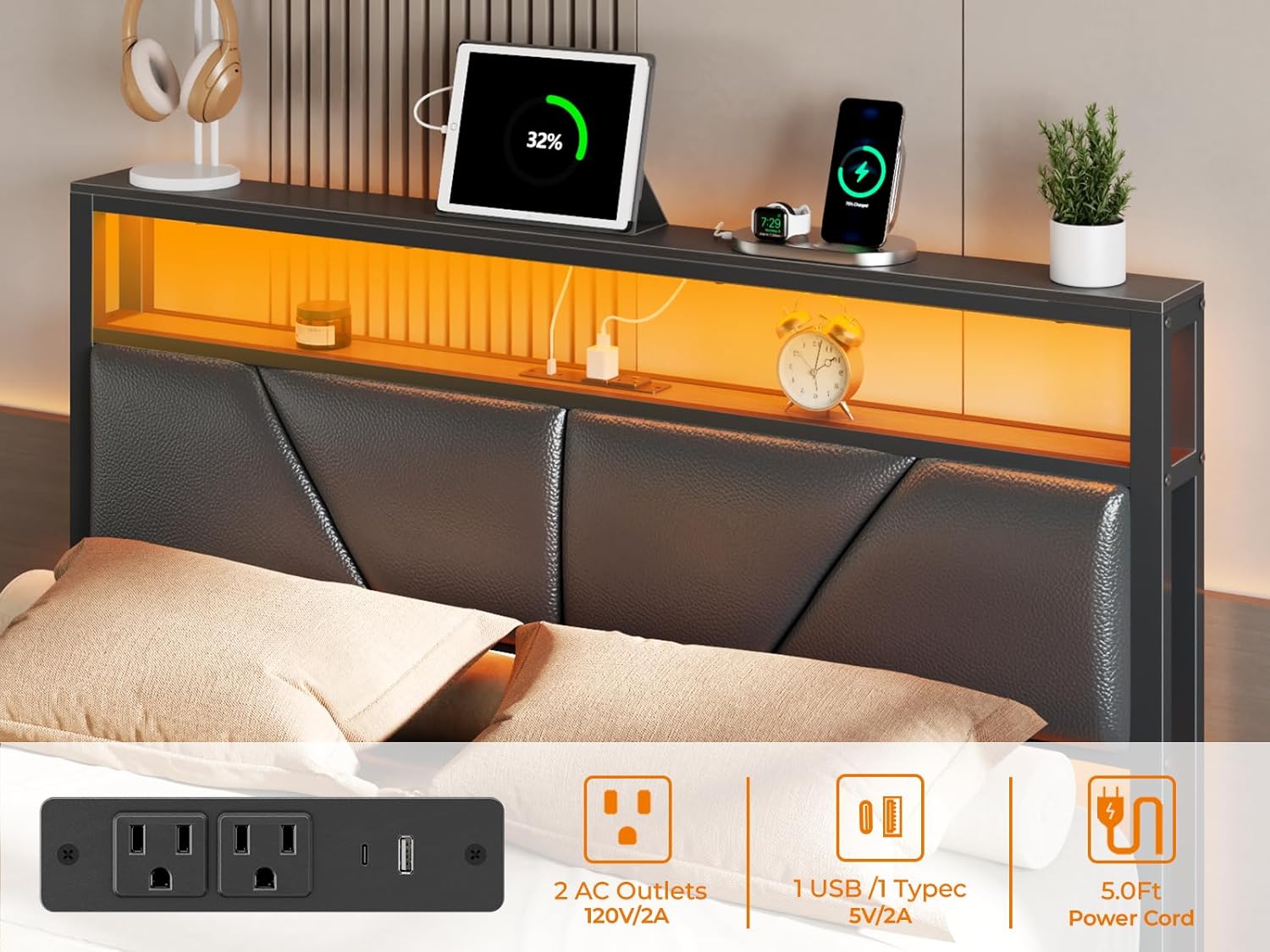 - 2-Tier Storage Headboard: Offers convenient vertical space for books, devices, or decor, keeping daily essentials within easy reach without taking up floor space.