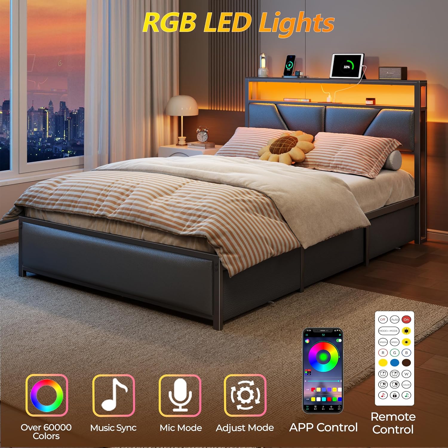 The Ourpic Full Size Bed Frame blends contemporary design with intelligent storage solutions, creating a bedroom centerpiece that supports both style and functionality. Crafted with a sleek PU leather upholstery finish, this platform bed elevates your space while delivering practical benefits tailored to modern living. Its thoughtful layout includes six spacious fabric drawers for organizing essentials, a two-tier headboard offering vertical storage, and integrated features like a built-in charging station and soft LED lighting. Engineered for quiet operation, the bed ensures undisturbed sleep—ideal for light sleepers or shared rooms. With no box spring required and straightforward assembly, it’s designed to support your mattress directly while simplifying setup and maintenance.
