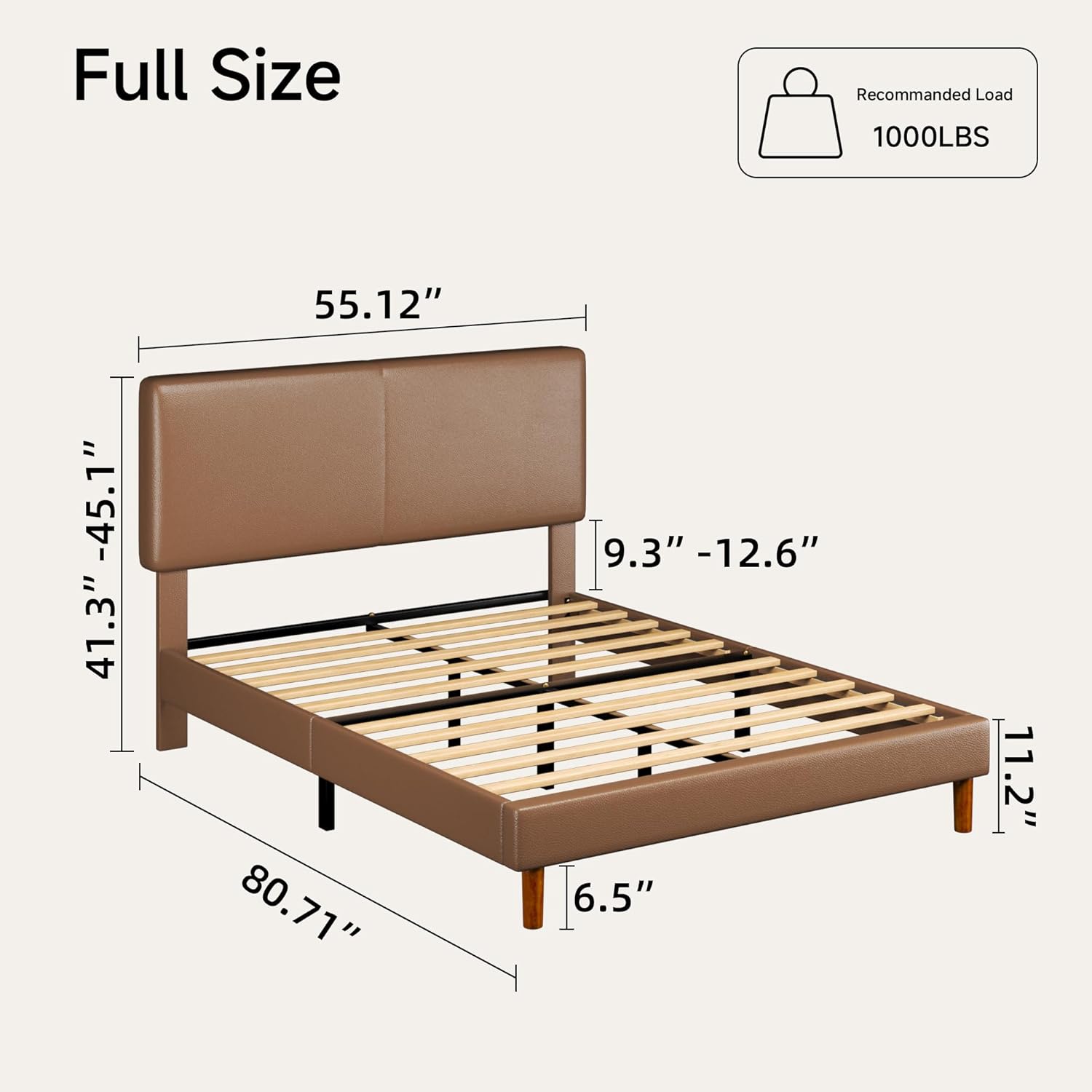 The Full Upholstered Platform Bed Frame with Headboard delivers a seamless blend of modern aesthetics and functional design, making it an ideal centerpiece for contemporary bedrooms. Crafted from high-quality faux leather and supported by a robust metal frame with solid wood legs, this bed combines durability with refined style. The sleek silhouette and dark-brown upholstery create a warm, inviting atmosphere while maintaining a minimalist edge that complements a wide range of interior themes.