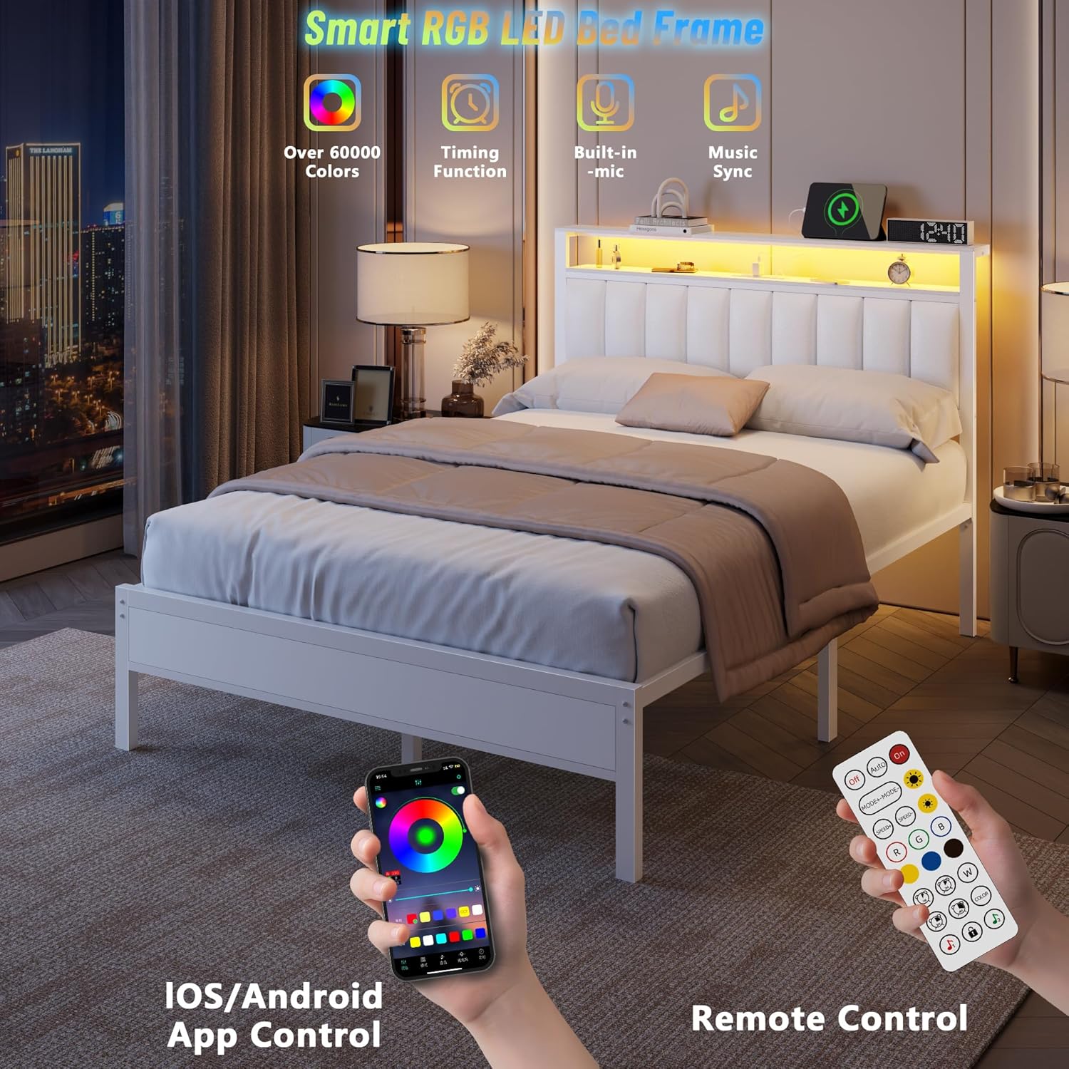 10/10 must buy.Remodeling my room and decided to get a new bed. All I have to say is I’m so impressed for the price. It came in the very next day after I ordered it and in perfect condition. Every part was labeled/ good quality metal. Instructions were so easy to follow and it took about 30 mins to build it. The charging Port on the headboard comes so in handy. And finally best for last, the LED lights has an app so no more control/ no more loading the control and loosing access to the lights. You can customize the light you want, the speed, and the brightness level. Also the app lets you put a timer for when you want the lights to turn off and plays music! Very satisfied with my purchase.