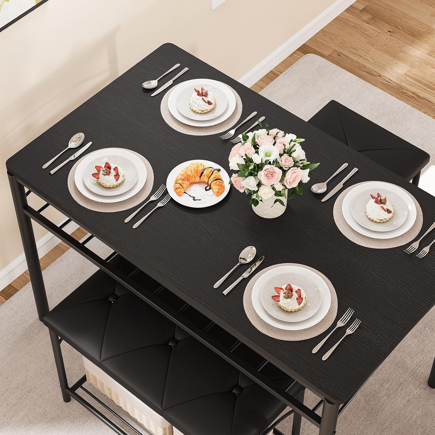 GarveeHome Dining Table Set for 4 with Upholstered Benches