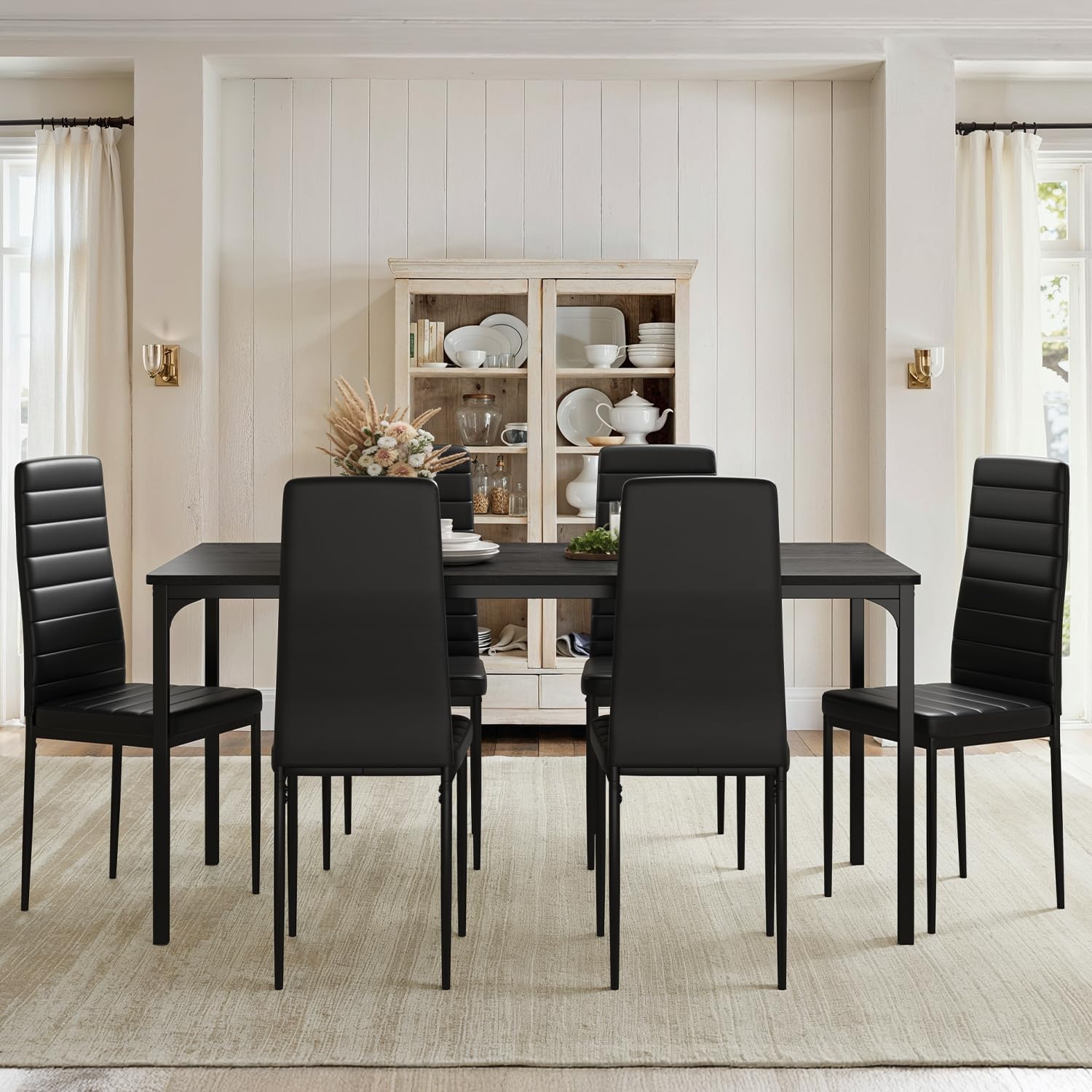 - Upholstered Chairs with Comfort: The six chairs feature padded seats and backs made from soft PU leather, providing a comfortable dining experience. The ergonomic design promotes good posture during meals.