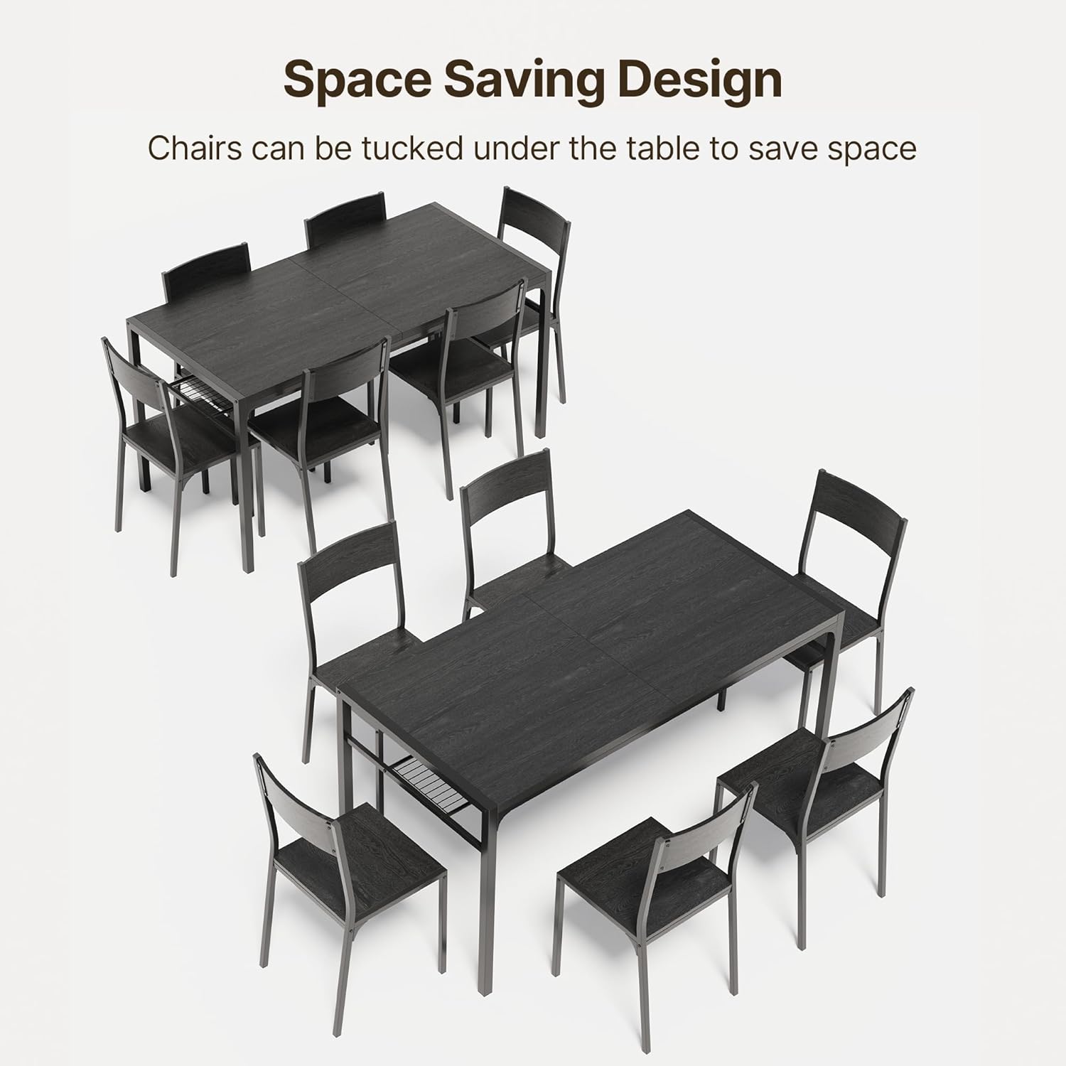 The Gizoon Dining Table Set for 6 is a thoughtfully designed 7-piece kitchen table set crafted specifically for modern living in compact spaces. Whether you’re furnishing an apartment, optimizing a small dining nook, or creating a functional workspace in your home office, this versatile set delivers both style and substance. Built with premium metal frames and engineered wood, it offers a blend of durability, aesthetic appeal, and practical performance that adapts seamlessly to daily use.
