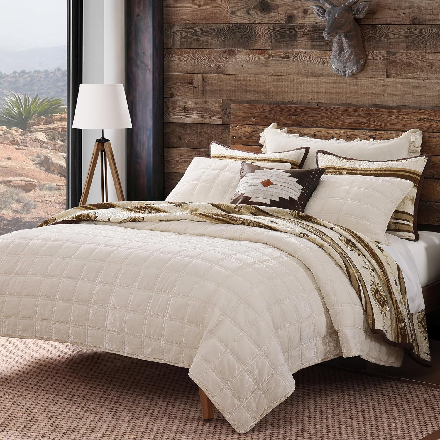 The HiEnd Accent Stella Faux Silk Velvet Double Box Stitch 3 Piece Quilt Set in King size brings refined elegance and everyday comfort to your bedroom with its luxurious texture and neutral stone hue. Crafted from premium faux silk velvet, this bedding set delivers a soft, lustrous finish that enhances both visual appeal and tactile experience. Designed with a double box stitch pattern, the quilt ensures lasting shape retention and durability, even after repeated washing and use. Whether you’re refreshing a master suite or adding warmth to a guest room, this 3-piece set—comprising a quilt and two coordinating shams—offers a complete, cohesive look that blends modern sophistication with rustic charm. Ideal for year-round use, its lightweight construction provides cozy comfort without overheating, making it suitable for all seasons.