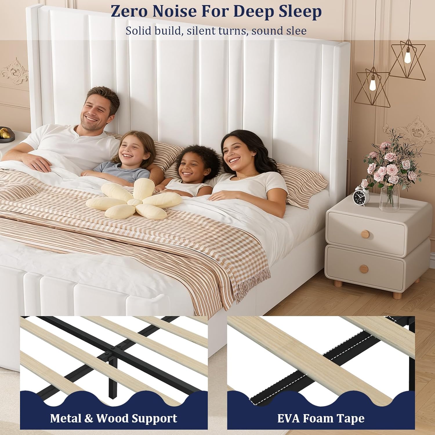 - Fully Padded Headboard with High-Density Foam: The entire headboard is constructed using high-density EVA foam, providing firm yet comfortable support for your back and neck. This thoughtful cushioning makes it ideal not just for sleeping but also for lounging with a book or watching TV in bed.