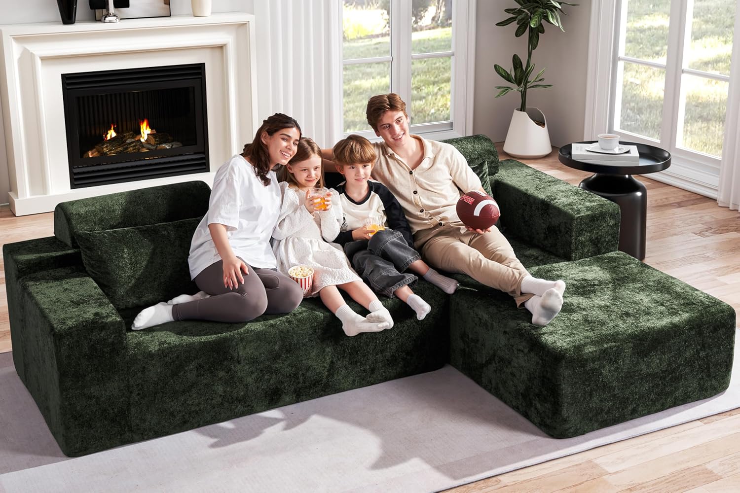 The Homguava Modular Sectional Couch redefines modern living room comfort with its elegant L-shaped design and luxurious distressed velvet upholstery. This 105-inch cloud couch features a deep seat that cradles you in softness, making it perfect for relaxing after a long day or enjoying quality time with family and friends. Crafted with both style and practicality in mind, the sofa arrives fully assembled and requires no tools to set up—just unpack and enjoy. Available in a rich green hue, this modular sectional blends seamlessly into contemporary, mid-century, or eclectic interiors while offering exceptional durability and ease of use.