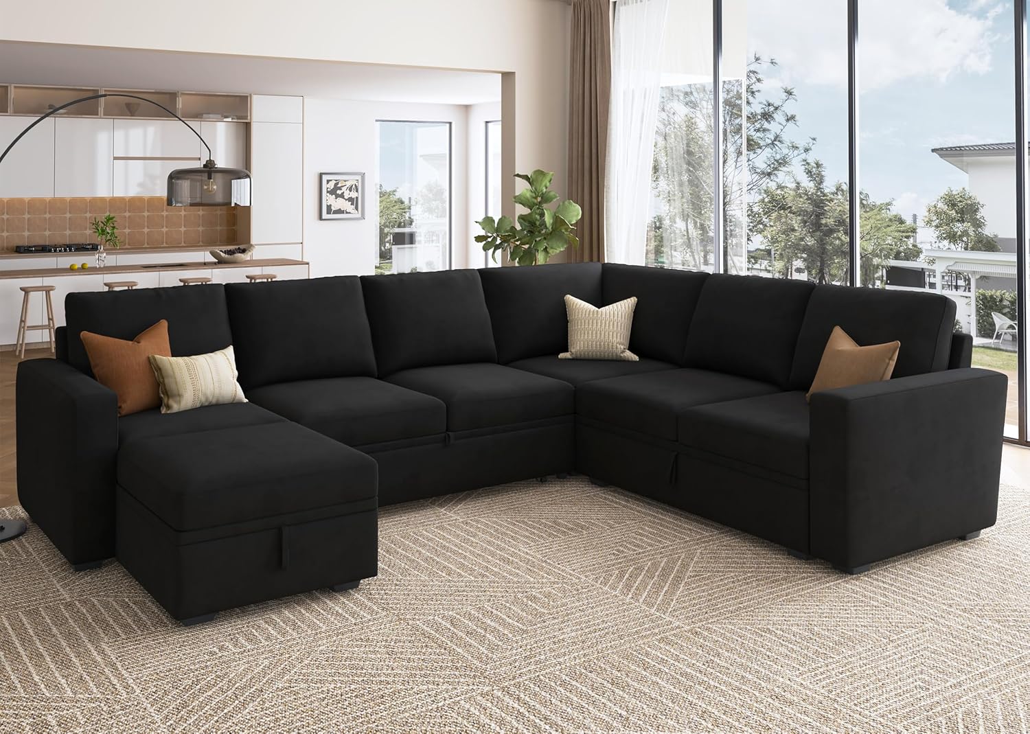 The HONBAY Sectional Sleeper Couch redefines versatile comfort for modern homes. This U-shaped sectional sofa seamlessly combines style and functionality, offering an integrated pull-out bed that transforms your living space into a guest-ready retreat with ease. Crafted from premium velvet upholstery, it delivers a luxurious feel while resisting everyday wear like stains, scratches, and peeling. Whether you’re hosting family movie nights or accommodating overnight guests, this modular design adapts to your needs without compromising on elegance or space efficiency. Its thoughtful layout and sturdy construction make it ideal for compact apartments, open-plan living rooms, or multi-functional spaces where every inch counts.