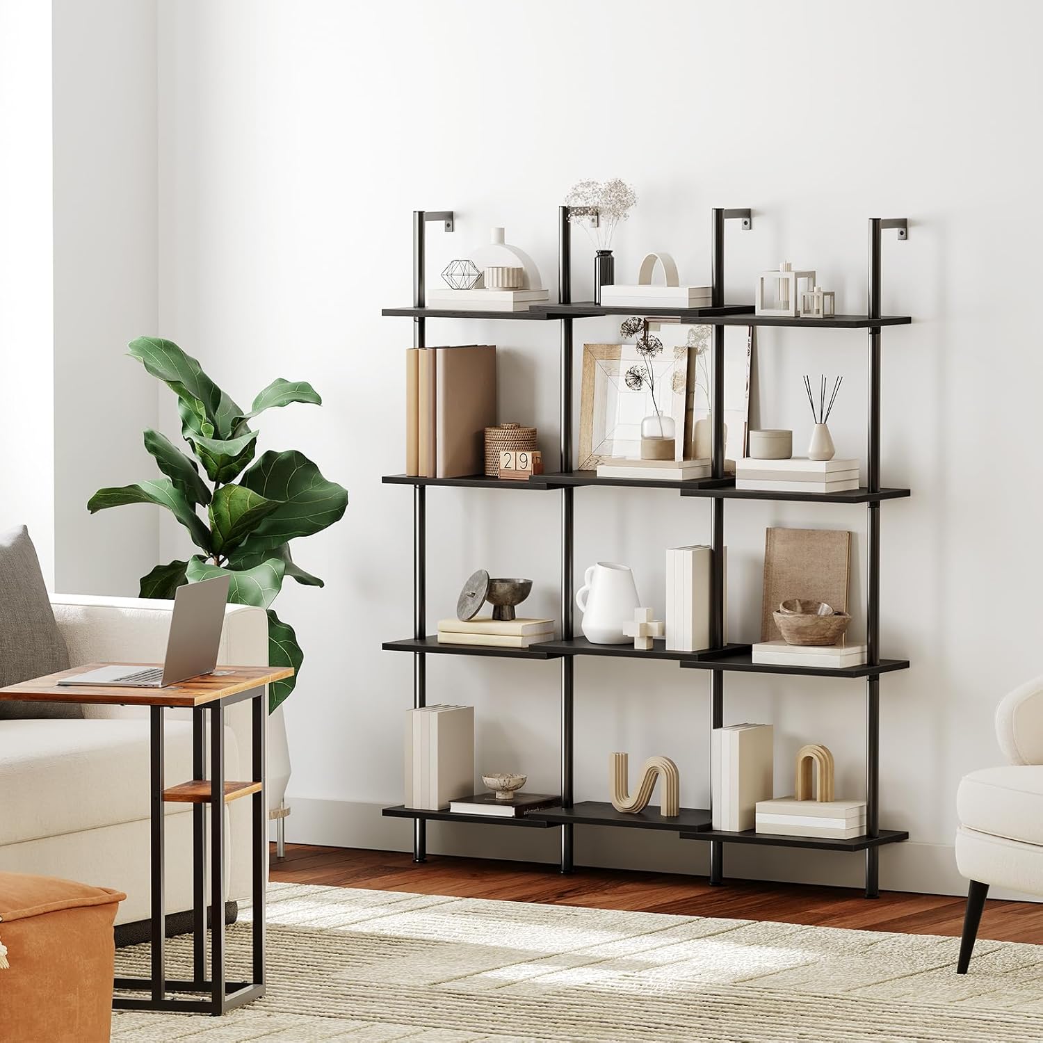 Very Sturdy: Made of premium panels and sturdy metal, the tall bookshelf is durable. Each shelf can undertake up to 22 lb. Adjustable feet can be easily adjusted even on uneven floors to keep the wall bookshelf balanced without scratches on the ground