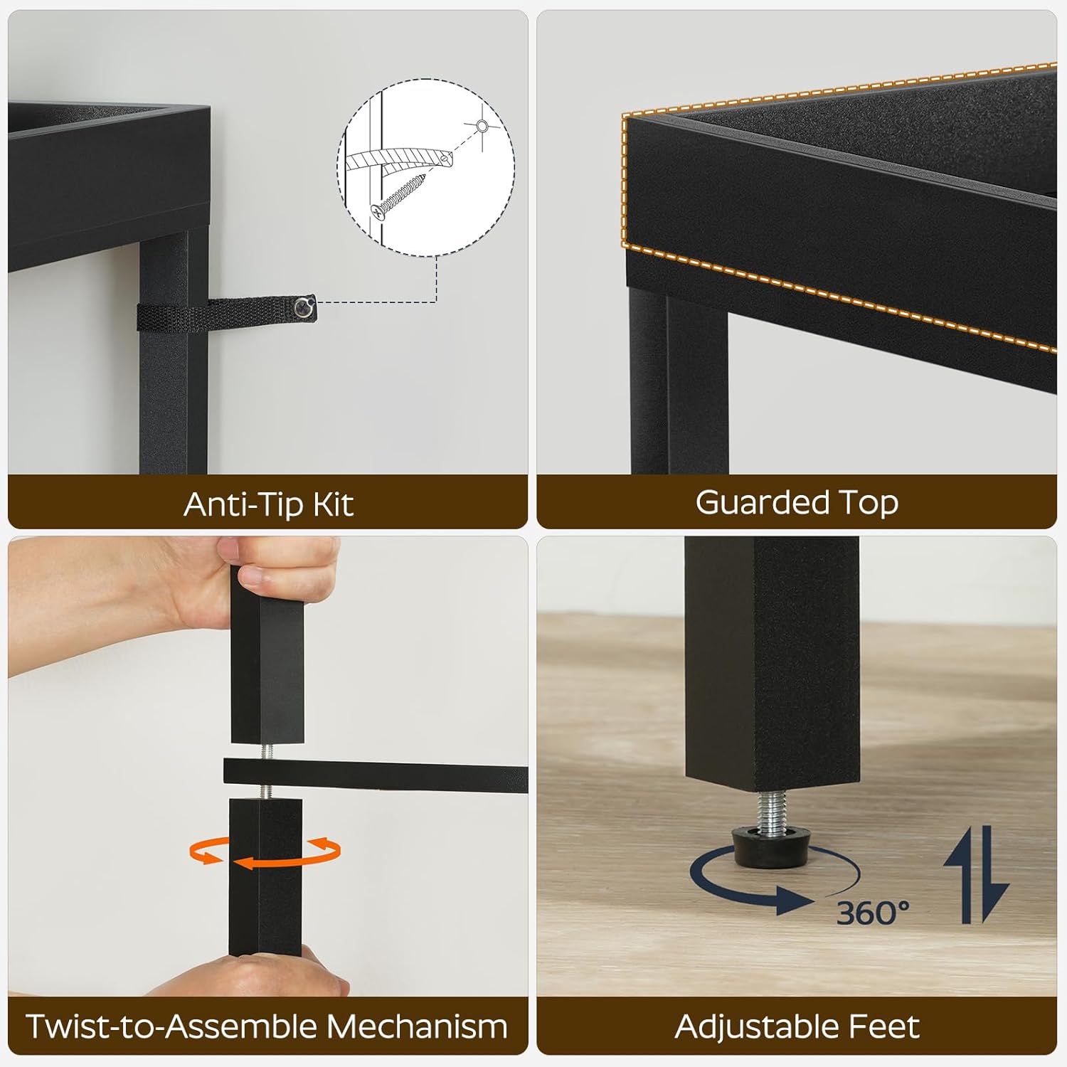 Sturdy Construction: Made of quality particleboard, this ladder shelf is sturdy and durable, with each tier capable of holding up to 22 lb. The adjustable feet, anti-tip kit, and top railing design further enhance its overall stability and safety
