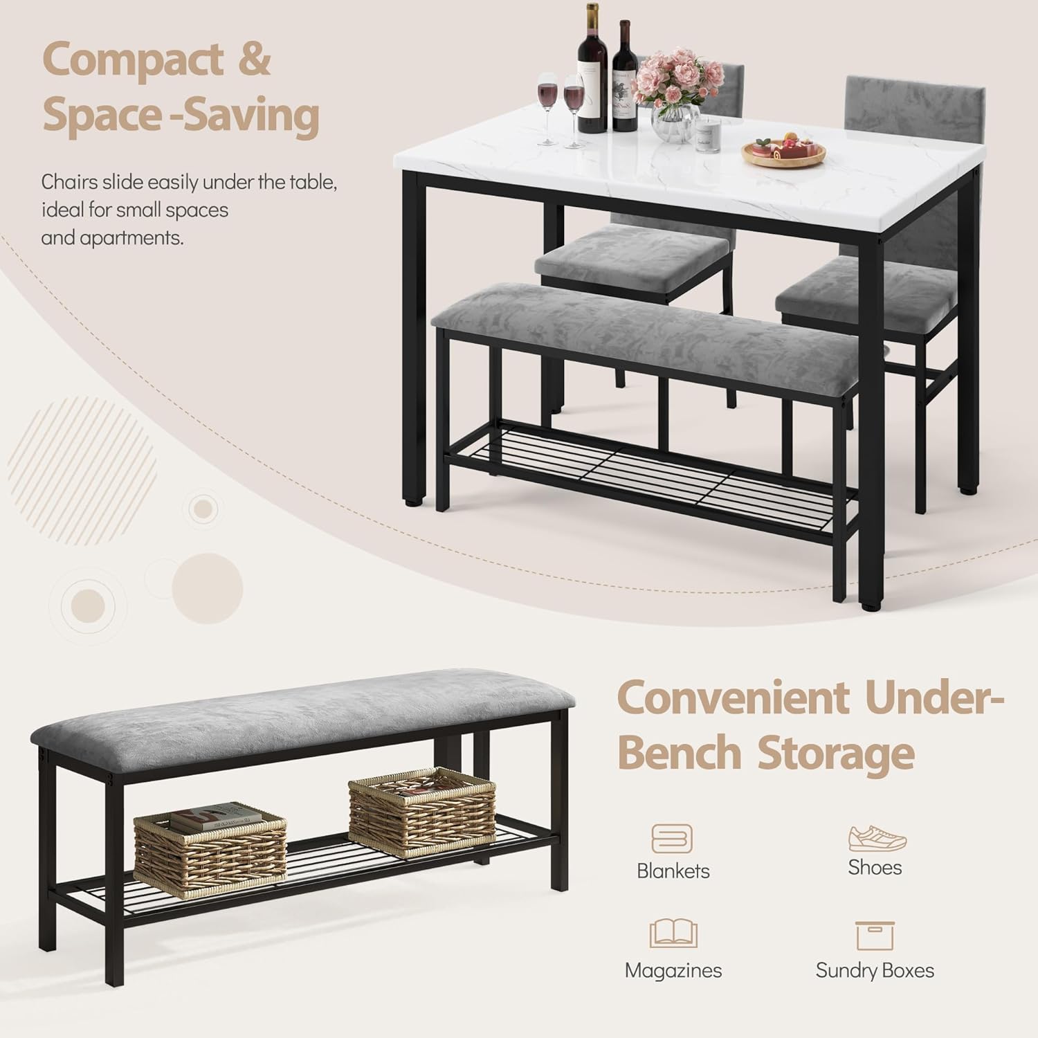 - Sturdy and Durable Build: Crafted from premium MDF and supported by a strong metal frame, this dining table set for 4 is built to last. Its durable construction guarantees long-term use, making the dining set perfect for everyday meals.