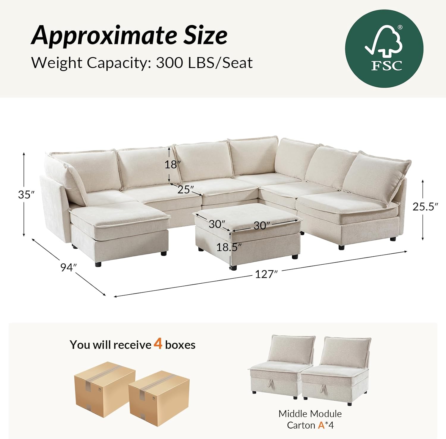 HULALA HOME Modular Sectional Sofa, Oversized 8 Seat U