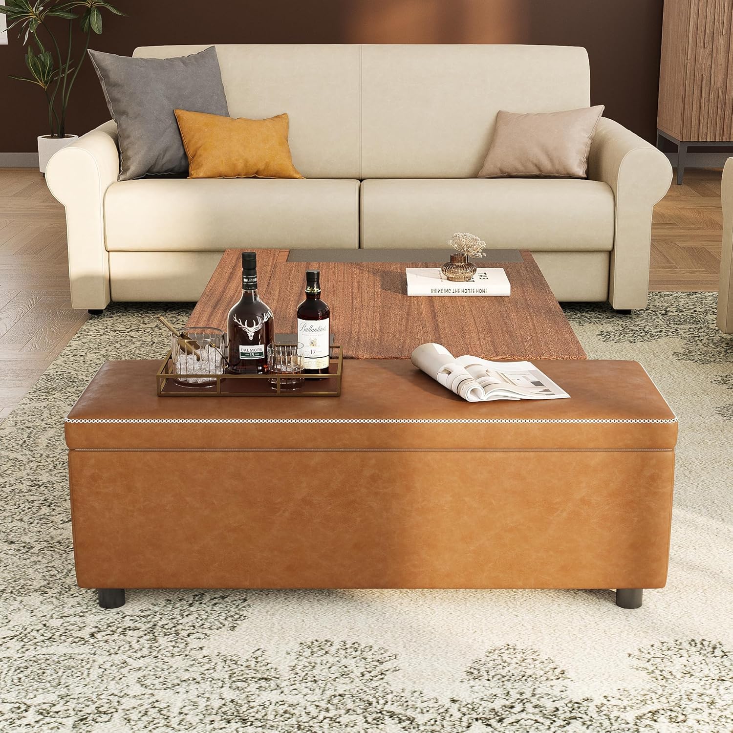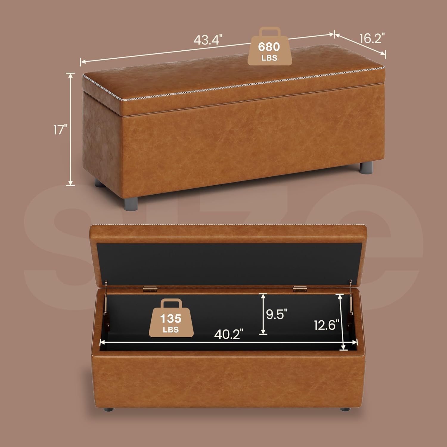 The IDEALHOUSE Storage Ottoman Bench is a thoughtfully designed piece that merges timeless mid-century modern aesthetics with practical home organization. Crafted for both style and function, this ottoman serves as a versatile seating solution, footrest, and storage unit—perfectly suited for bedrooms, living rooms, or entryways. Its rich brown synthetic leather exterior features refined stitching details that enhance its premium appearance, while the sturdy construction ensures long-lasting durability. With dual safety hinges and a weight capacity of up to 670 lbs, this bench offers reliable performance whether used for sitting, lounging, or storing household essentials. Ideal for modern homes seeking both beauty and utility, the IDEALHOUSE Storage Ottoman Bench delivers a seamless blend of elegance and everyday convenience.