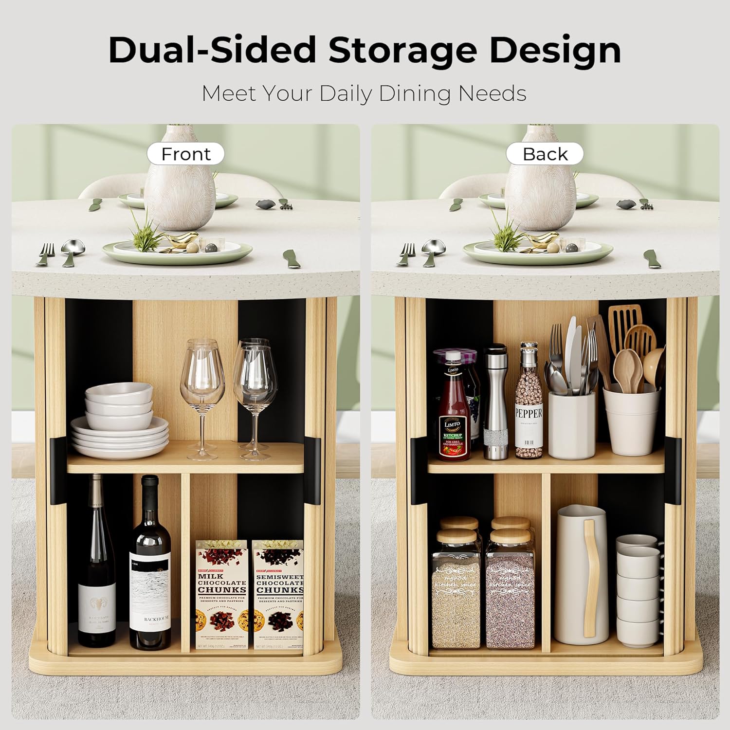 • Integrated Storage Shelf: A convenient shelf beneath the tabletop provides discreet storage for table linens, books, serving trays, or other essentials—helping keep your dining area tidy and organized.