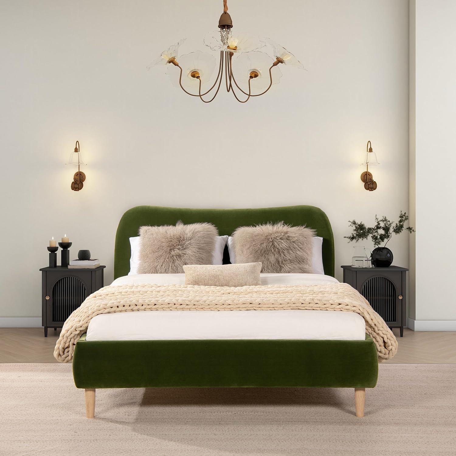 - Curved Headboard Design: Inspired by classical Roman architecture, the gently arched headboard adds soft curvature and visual depth to the bed, creating a focal point that enhances the room’s overall design narrative.