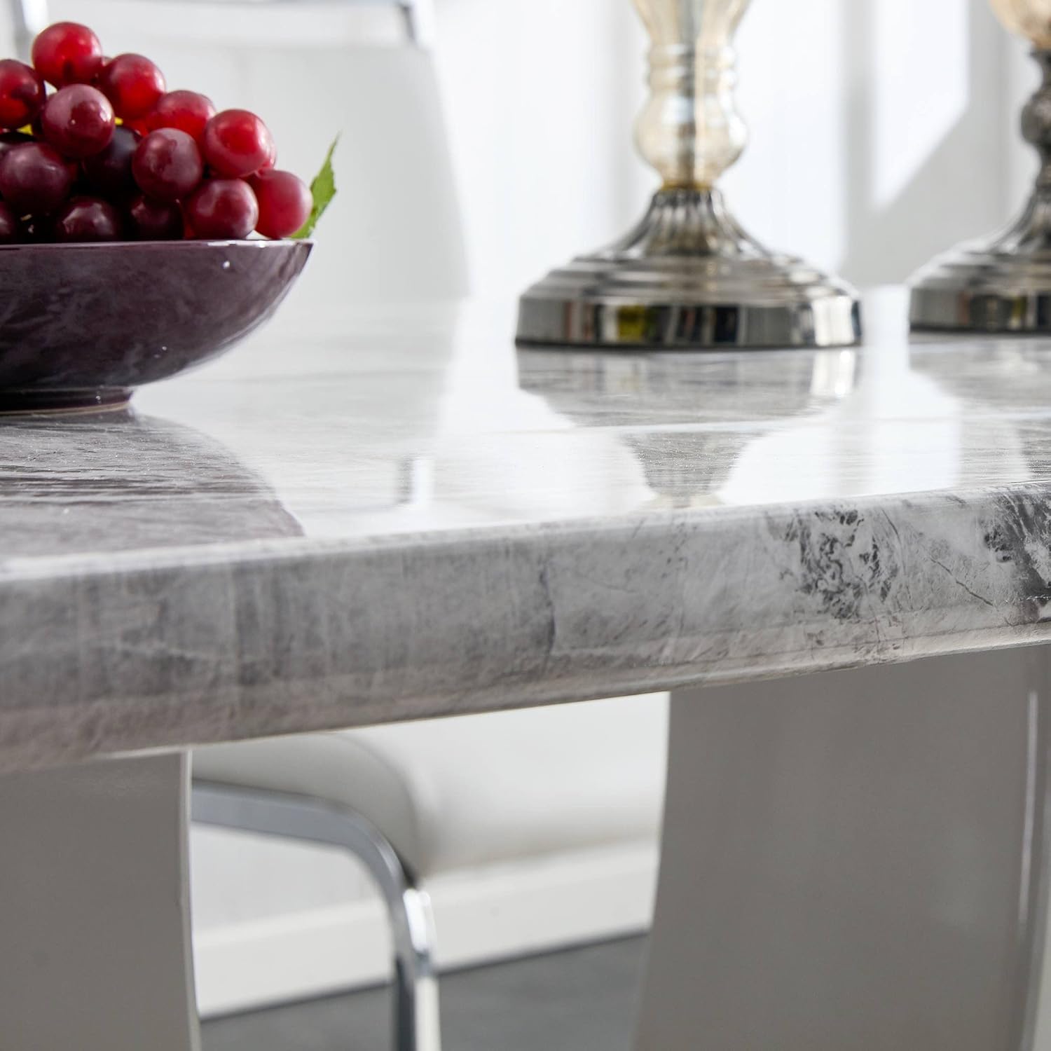 Absolutely Love This Dining Table!This dining table exceeded my expectations in every way. The marble-look tabletop is stunning and instantly makes the entire dining area look more modern, bright, and high-end. It looks far more expensive than it actually is and has received so many compliments from family and guests.The table is very sturdy and well-made, with a solid, stable feel that’s perfect for everyday use. It offers plenty of space for family dinners and entertaining, yet doesn’t overpower the room. Cleaning is effortless—spills wipe right off, which is a huge plus.Assembly was straightforward, and everything arrived well-packaged and in perfect condition. This table pairs beautifully with modern or contemporary chairs and truly elevates the whole space. If you’re on the fence, don’t hesitate—this is an amazing purchase and an excellent value for the price!✔️ Elegant, upscale look✔️ Strong and stable✔️ Easy to clean✔️ Great size for gatherings✔️ Outstanding valueLet me know if you want a short “Verified Purchase” version or one with a more emotional tone 💯