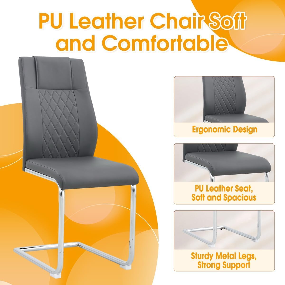- Four Premium PU Leather Cantilever Chairs: Designed for ergonomic support and long-lasting use, these chairs feature a minimalist cantilever frame in matching dark grey, ensuring visual harmony with the table.