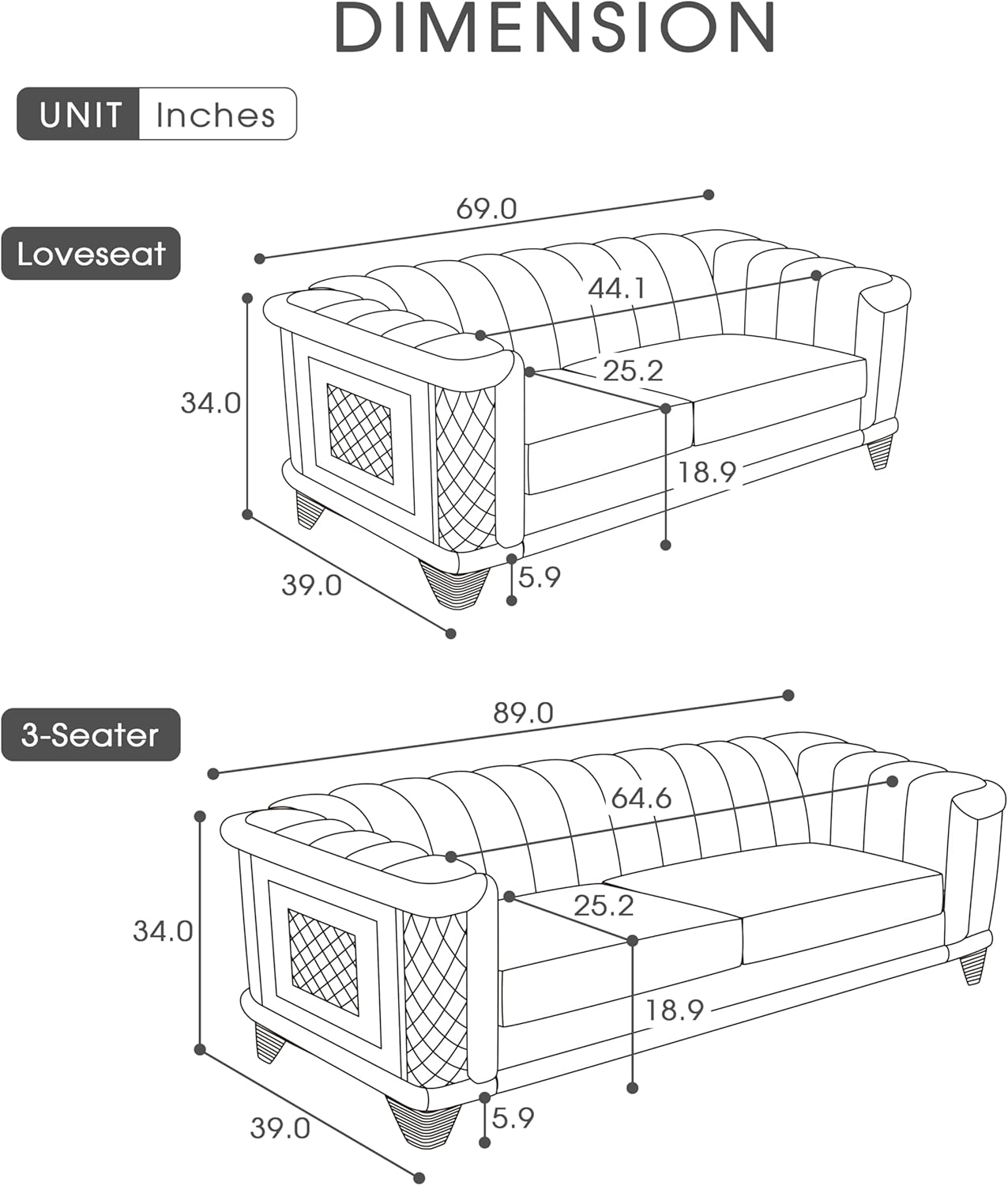• Dimensions – 3-Seater Sofa: 89 inches (L) x [not specified] W x [not specified] H