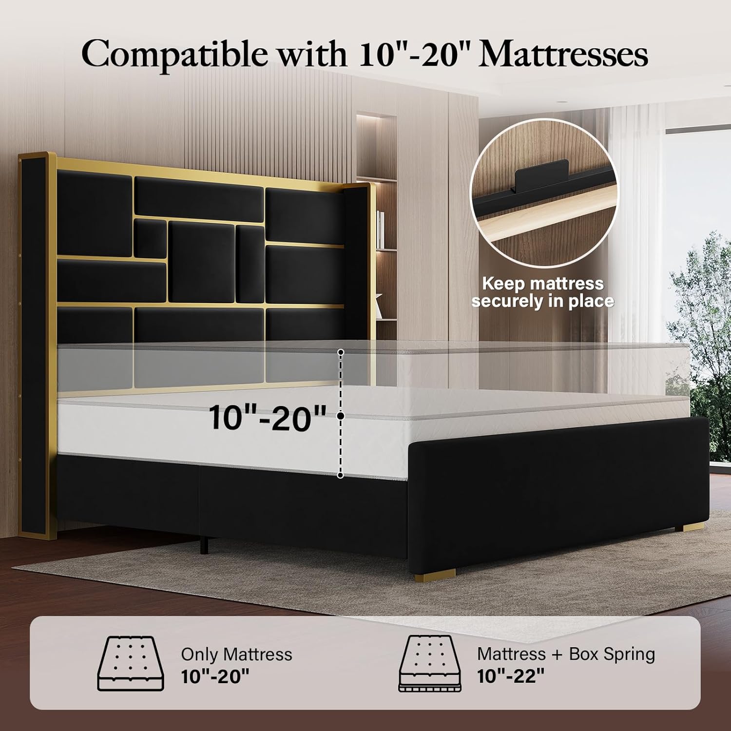 - Mattress Support Range: Fits mattresses from 10 to 20 inches in thickness
