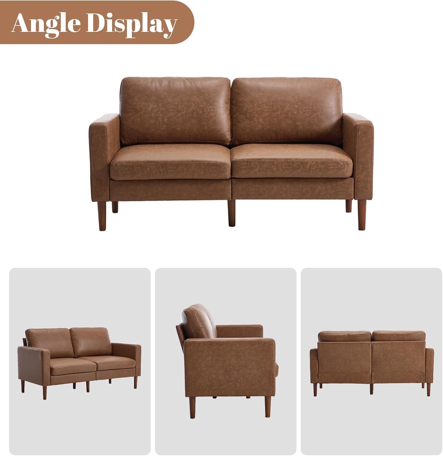 The Kingfun 65″ Loveseat Sofa brings together timeless mid-century modern design and everyday functionality, making it an ideal choice for compact living spaces. Crafted with a solid wooden frame and high-quality faux leather upholstery, this two-seater couch offers both durability and refined style. Its sleek silhouette and compact dimensions allow it to fit effortlessly into small apartments, studios, bedrooms, or guest rooms without compromising on comfort or aesthetic appeal. Whether you’re looking for a cozy reading nook, additional seating for visitors, or a stylish focal point in your home, this loveseat delivers reliable performance with minimal maintenance.