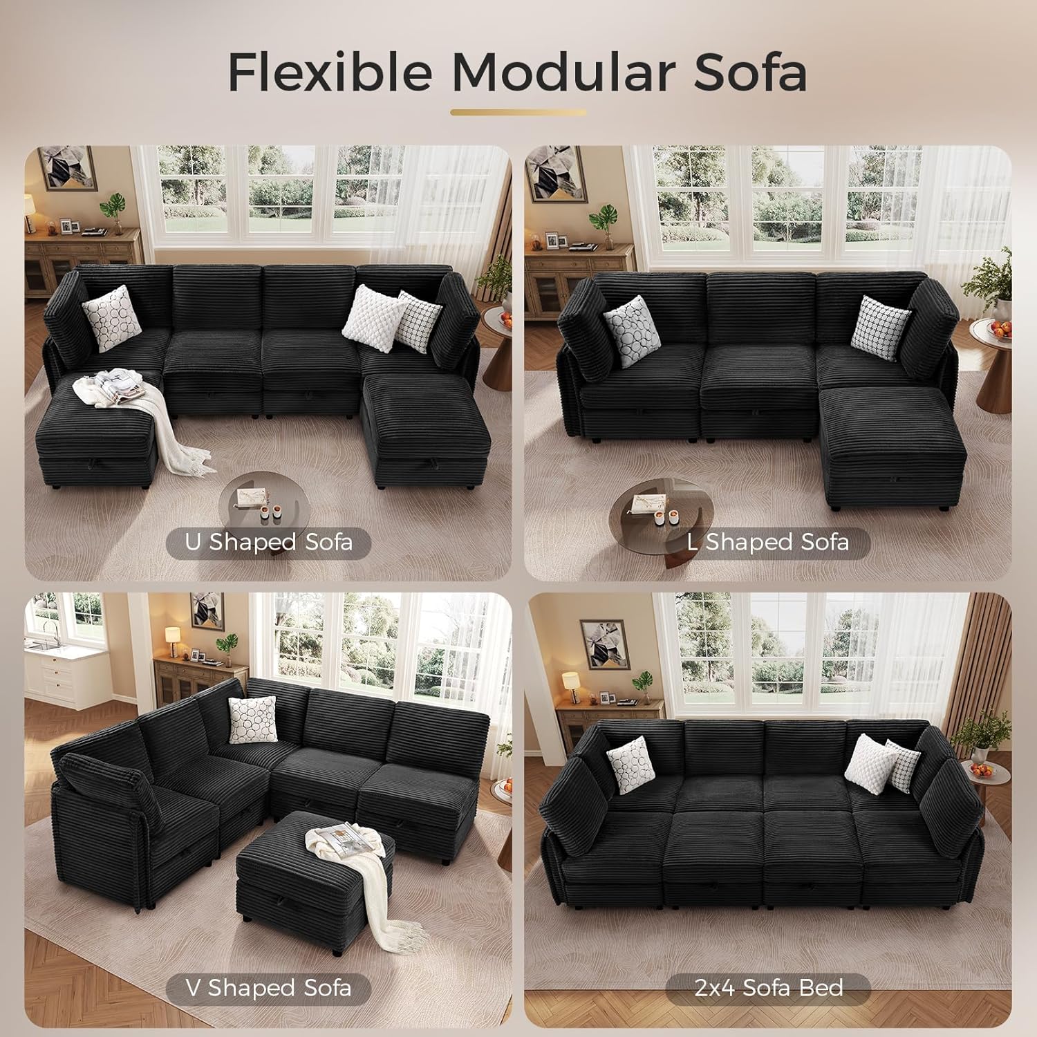 The KKL Modular Sectional Sofa redefines modern living with its elegant U-shaped 6-seater design, perfectly suited for living rooms, apartments, and villas. Crafted from plush wide-wale corduroy fabric, this sectional combines tactile softness with enduring style, offering a skin-friendly surface that invites comfort at every touch. Its modular construction allows you to adapt the layout to fit your space—whether you’re creating an intimate conversation circle or maximizing seating for guests. Beyond aesthetics, practicality takes center stage: each seat and the included ottoman features built-in storage compartments, helping keep remotes, blankets, books, and other essentials neatly tucked away. Ideal for families, remote workers, or social hosts, this sofa blends functionality, durability, and contemporary flair into one cohesive piece.