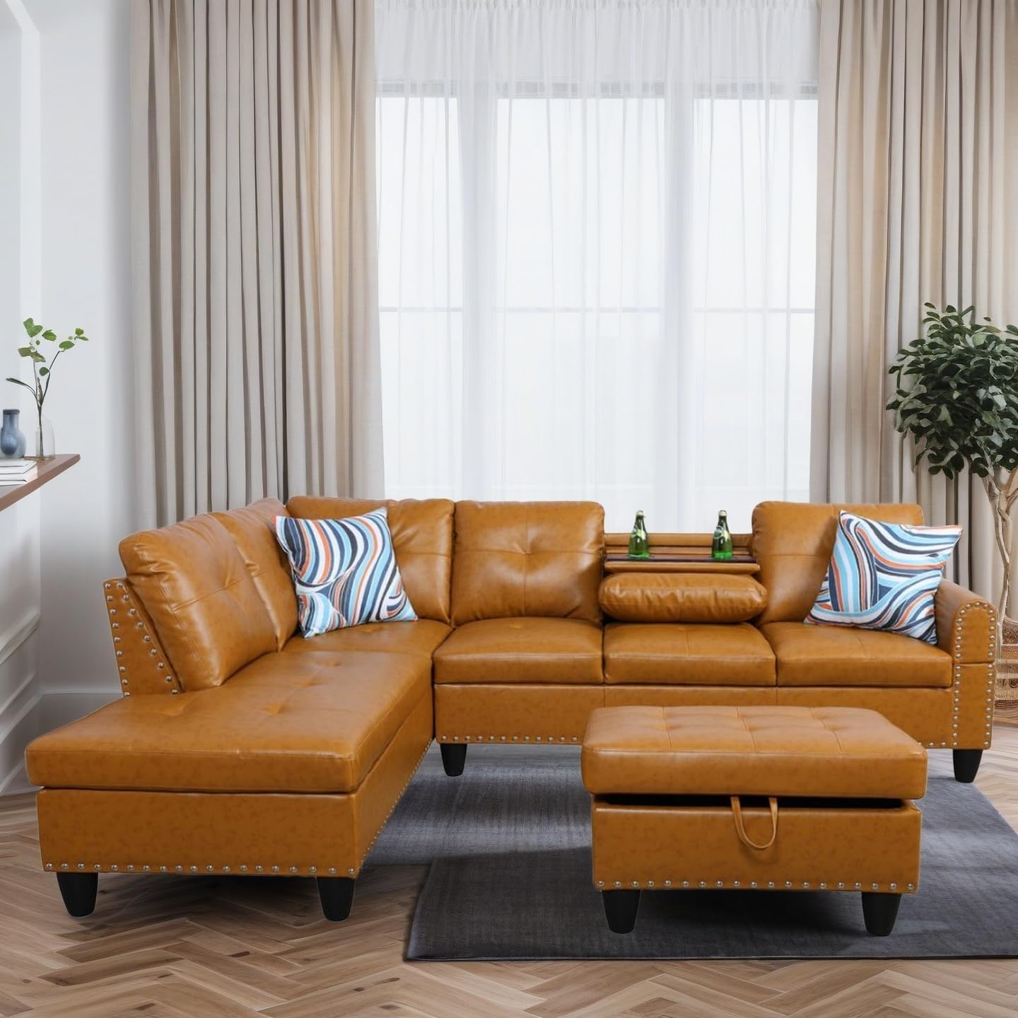 Perfect for renters, small-space dwellers, or anyone who values furniture that grows with their lifestyle, the Trygoal L Shaped Couch combines practicality with timeless design. Its neutral ginger color complements a wide range of interior styles, from minimalist and Scandinavian to rustic and modern farmhouse. Built for comfort and durability, it offers a soft, leather-like finish that’s both easy to clean and resistant to wear over time.