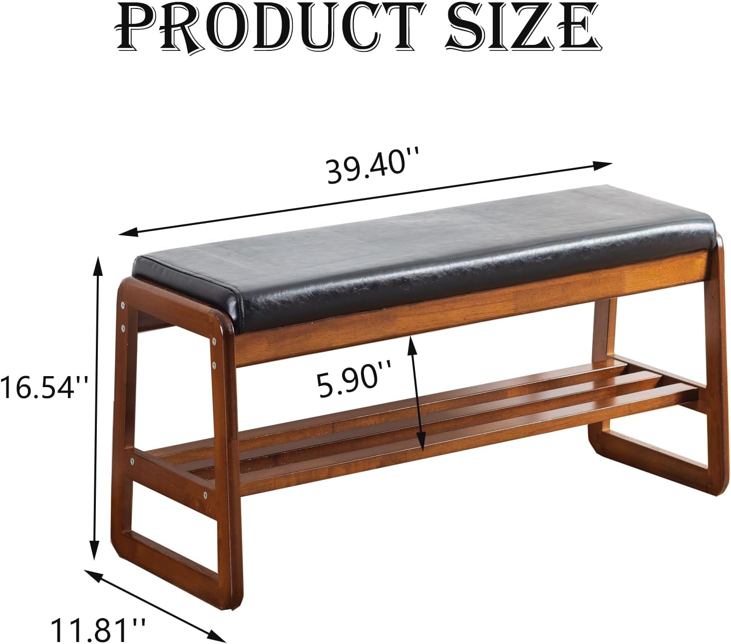 latifolia Shoe Bench, Solid Wood Shoe Bench with Cushion, 2 Tier Shoe Storage Bench for Entryway, Hallway, Living Room(Black,39.70”L)
