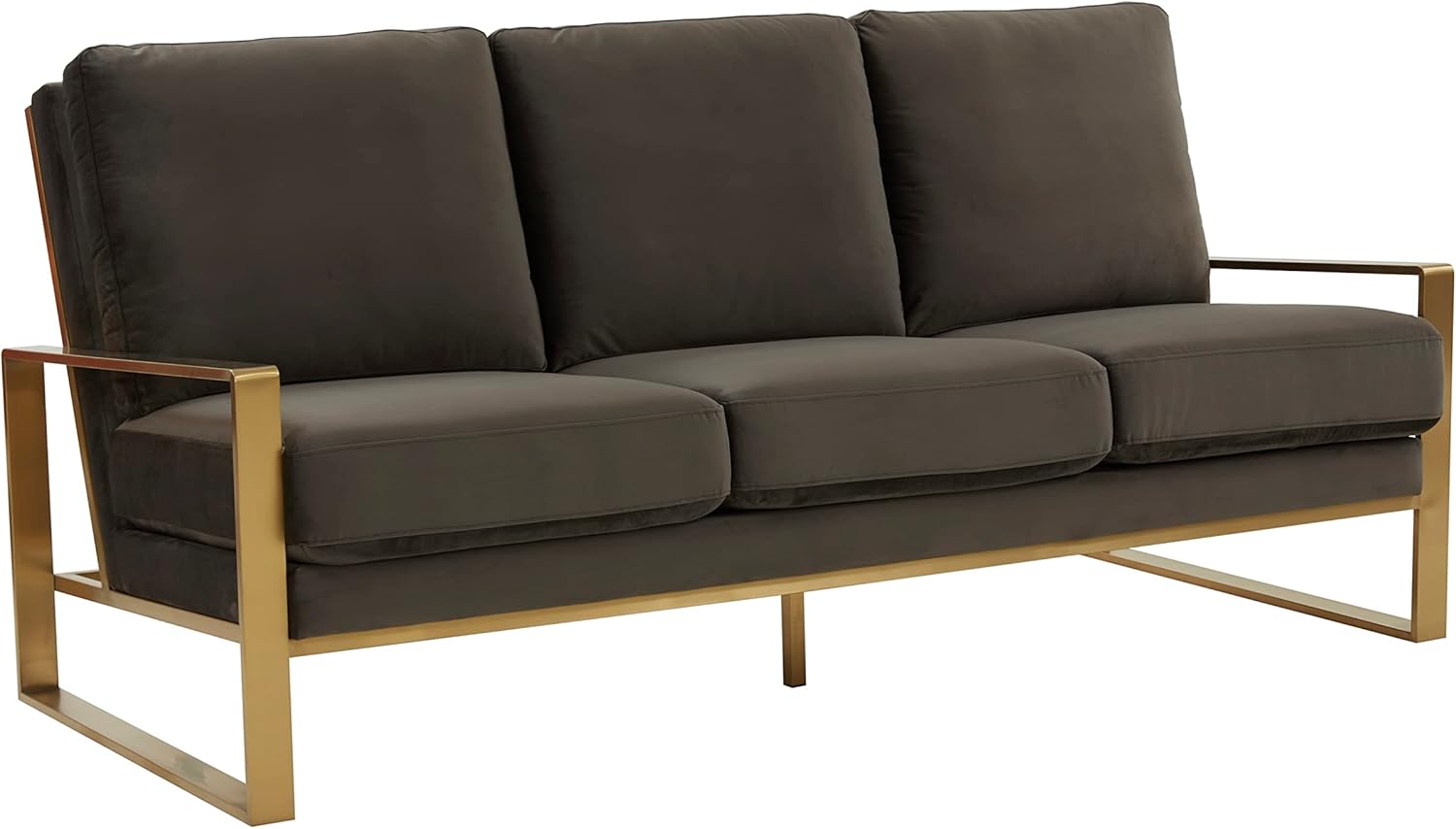 LeisureMod Jefferson Modern Velvet 3-Seater Sofa with Gold