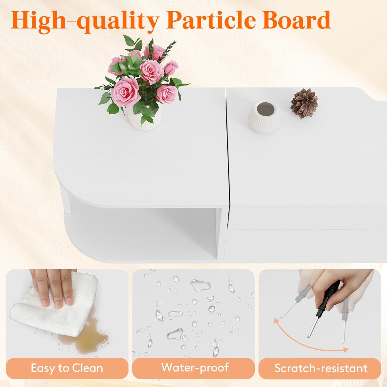 - Built-in Power Strip: Features an integrated power strip with multiple outlets to conveniently charge or power connected devices—such as streaming boxes, soundbars, or game systems—without exposing cords or creating clutter.