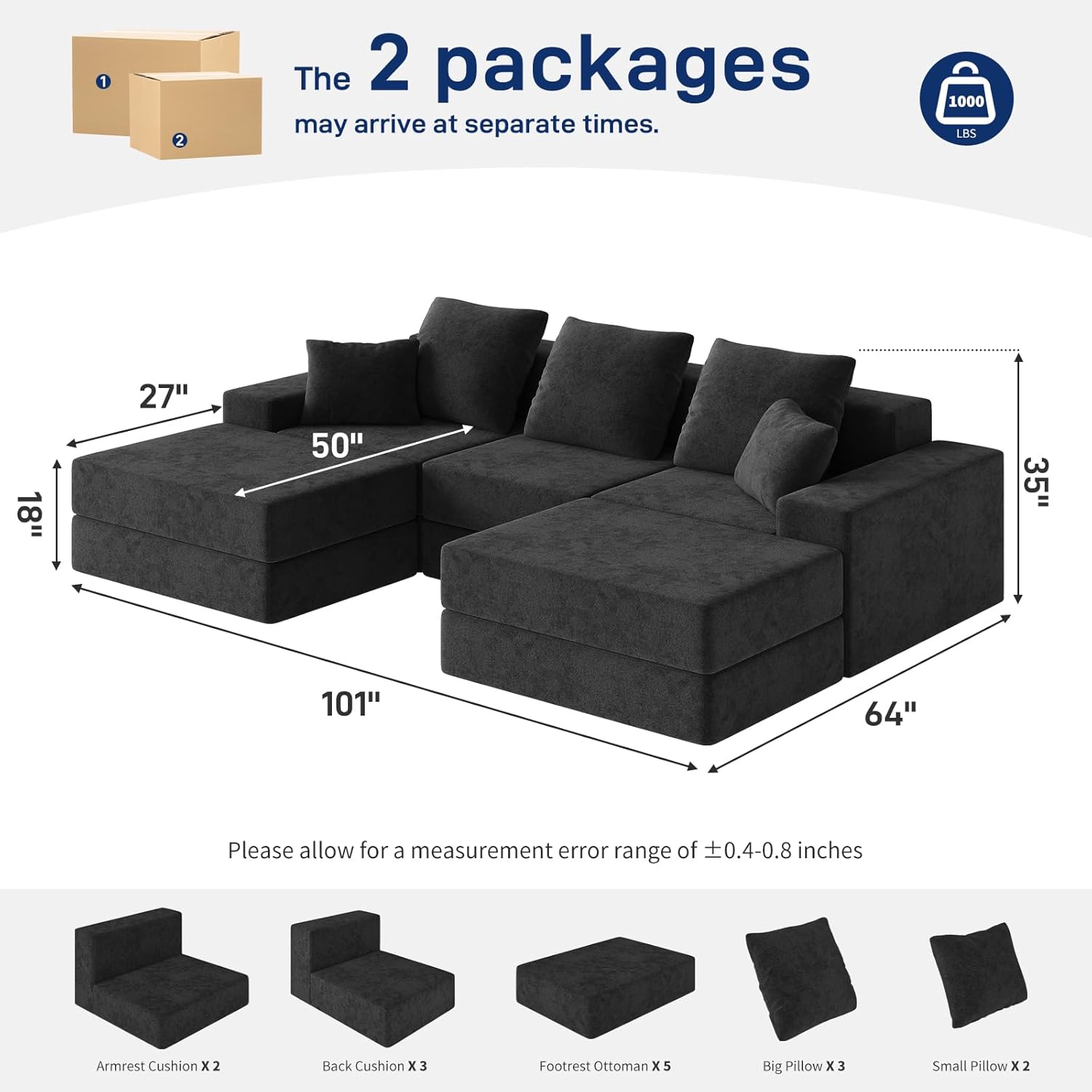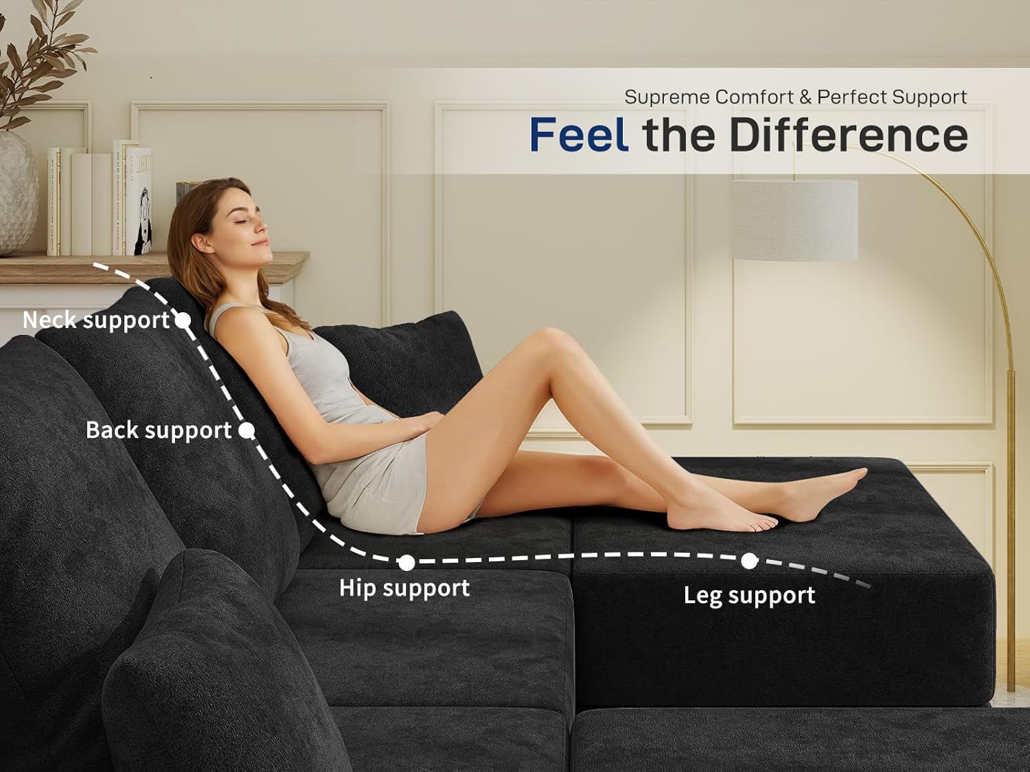 Despite its generous size, the 101-inch footprint remains compact enough for apartments, studios, or smaller homes where maximizing floor space matters. Its neutral black color complements a wide range of interior schemes, while the clean lines align with modern aesthetics. Easy rearrangement means you can refresh your room’s look seasonally—swap configurations to create more conversation-friendly setups or shift toward a cozier reading nook.