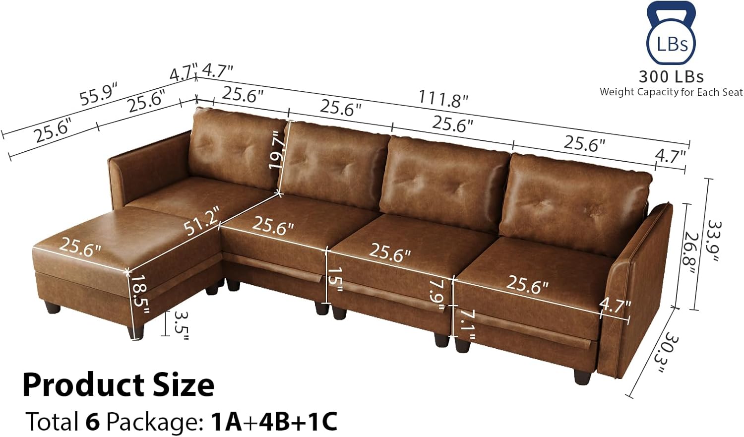 I ordered this LLappuil Modular Sectional Sofa with Storage, Faux Leather Fabric 7 Seater Modular Sofa with Reversible Chaise, 112 Inch Convertible U Shape Sectional Couch with Ottomans because I wanted a fresh look in my living room. The items arrived in just a few days in separate boxes. I wish I had known that signature was required because it was a little challenging to coordinate my schedule to be home for delivery. I ordered the color Cognac, but I received the Brown instead. One reason I wanted the Cognac besides the lighter color is that it was faux leather, and the Brown is listed as a different material. Customer service was good about responding to my messages with my concern for the wrong color. I actually liked the new color which looks a little more gold or tan than brown, and figured the fabric may be better with pets, so I told them I would be willing to keep it as long as they honored the $200 coupon that came with the brown color. I was happy that they agreed to honor it.I have arthritis in my hands, but I found the items pretty easy to assemble. Each piece got easier as I figured things out. It was more challenging to break down all the boxes than to assemble the furniture! The furniture feels very well made, and it’s pretty comfortable. I like the pillows that came with it a lot, but I added some nice marine-themed pillows that I thought would go great with the Cognac color, but they actually look pretty nice with the Brown, too.I love the look and the function of the sectional sofa, and it’s comfortable, though a little on the firm side. There is plenty of storage. The only thing is that there are little gaps between the pieces when you assemble them, and the gap where I sit seems to like to swallow my remote and my cell phone. 🙂 Still, it’s easy to retrieve things when this happens, and I look forward to enjoying my furniture for many years to come!