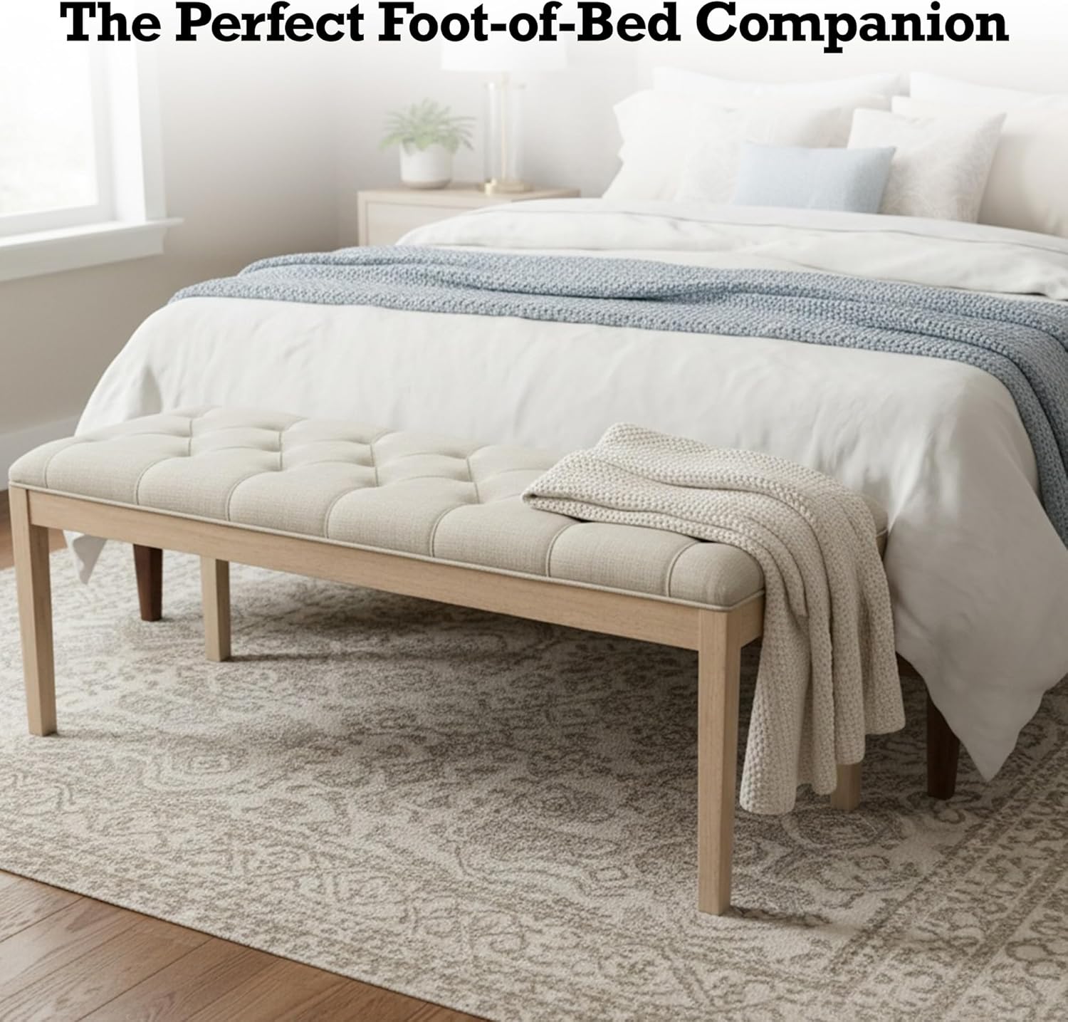 In living rooms, the bench functions beautifully as an accent beside a sofa or armchair, offering additional seating during gatherings or a resting place for blankets and pillows. In entryways, it provides a practical and stylish solution for putting on or taking off footwear, reducing clutter and enhancing organization. The neutral beige linen color harmonizes easily with a wide range of interior styles—whether your décor leans toward minimalist, Scandinavian, industrial, or rustic themes.