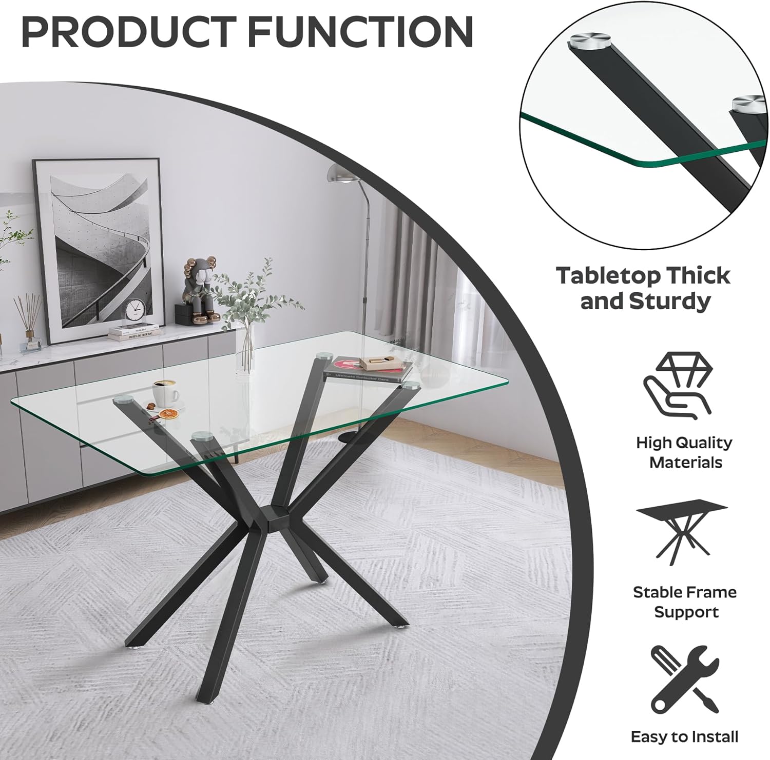 - Sleek 47-Inch Glass Tabletop: The large, transparent glass surface offers a modern, airy feel, making rooms appear more spacious and open. Its clean lines and reflective quality enhance natural light, creating an inviting atmosphere for any meal.