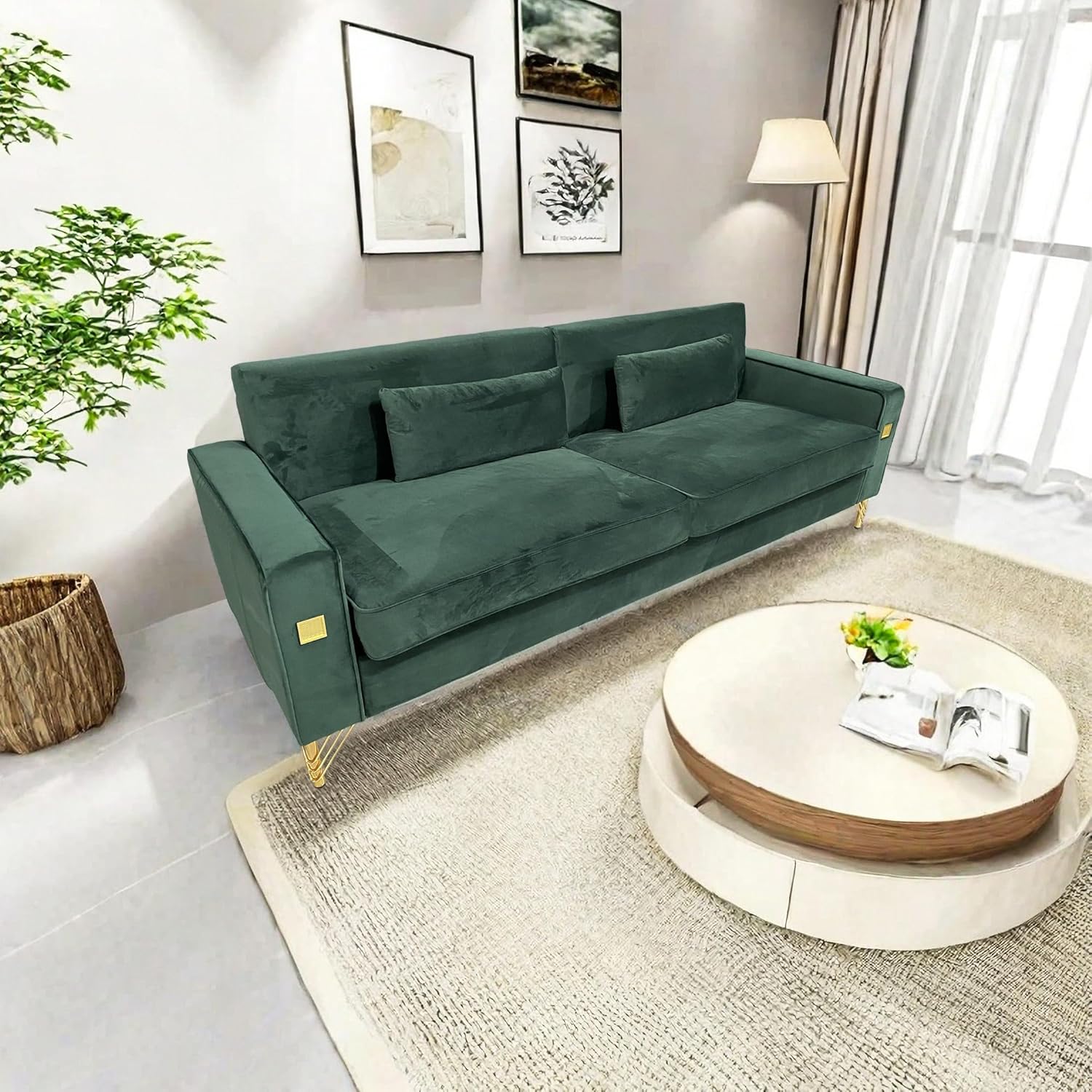 Luxury Velvet Sofa with Gold Accents – Modern 3-Seat Couch