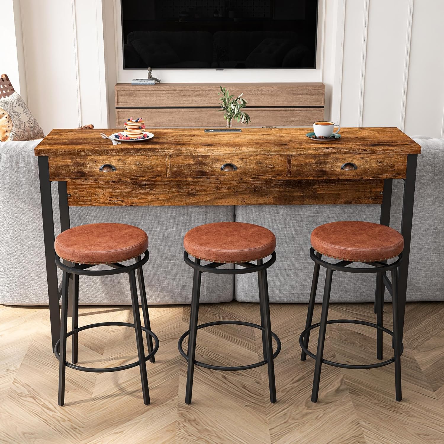 This versatile bar table set is perfect for homeowners, renters, and professionals seeking stylish yet functional furniture for limited spaces. The integrated power outlets eliminate the need for extension cords, creating a clean, organized look while keeping your devices charged during meals, work sessions, or social gatherings. The three drawers offer practical storage without adding bulk, making it easy to keep dining accessories within reach.