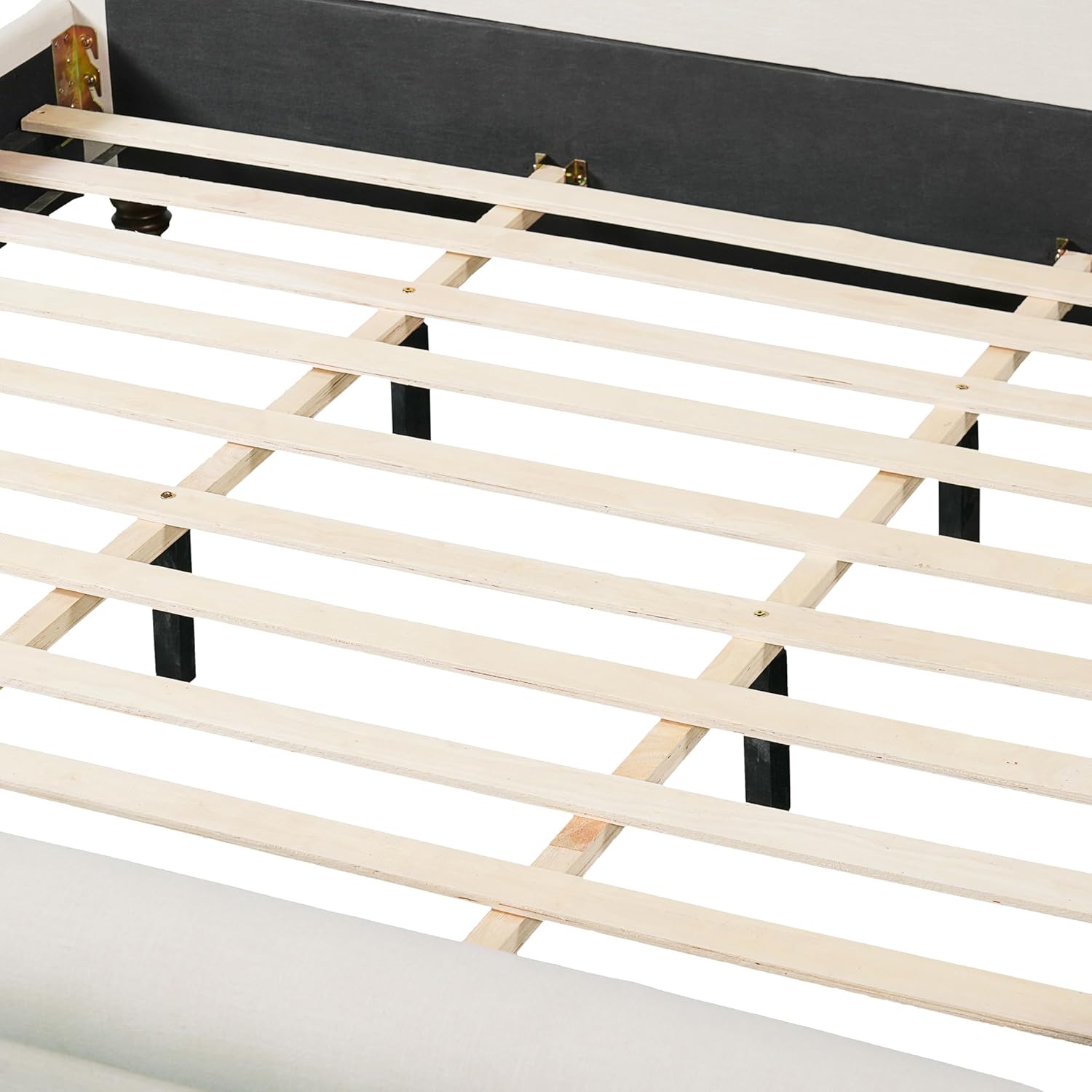 This Merax upholstered bed frame is engineered for homeowners and renters who value both form and function in their bedroom furniture. The neutral beige linen fabric effortlessly integrates into existing décor schemes, whether paired with earth tones, whites, grays, or bold accent colors. Its clean lines and textured surface make it suitable for modern, Scandinavian, farmhouse, or transitional interiors.