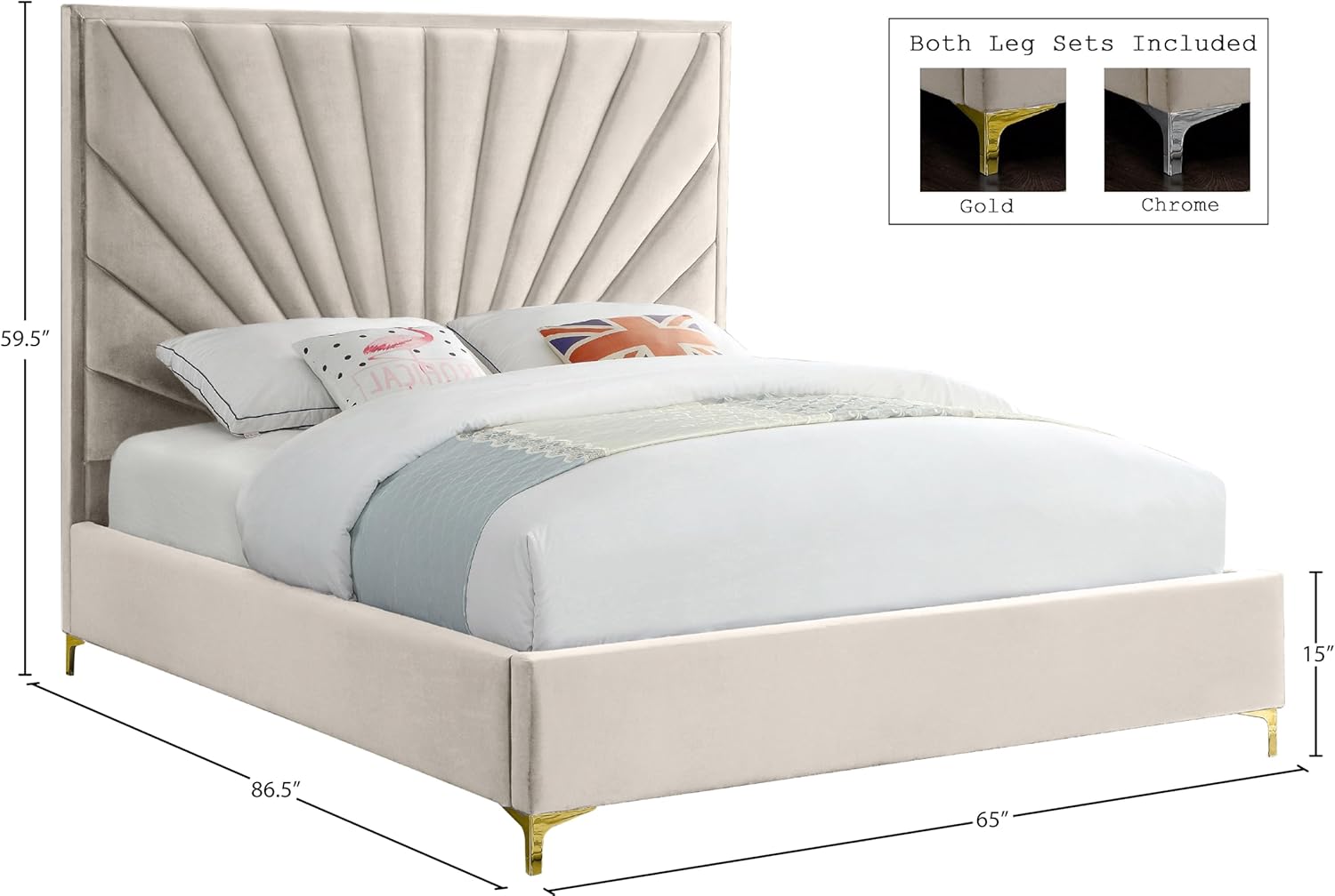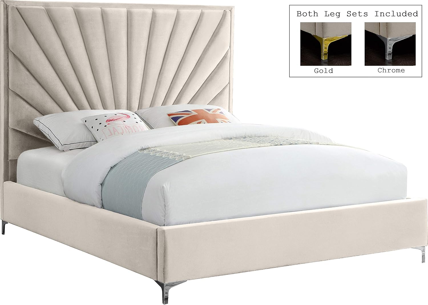 • Dual Leg Finishes Included: Comes with two complete sets of legs—one in lustrous gold and another in sleek chrome—allowing you to switch styles effortlessly. Whether you prefer warm metallics or cool tones, you can adapt the bed’s look to match seasonal decor or personal mood shifts.