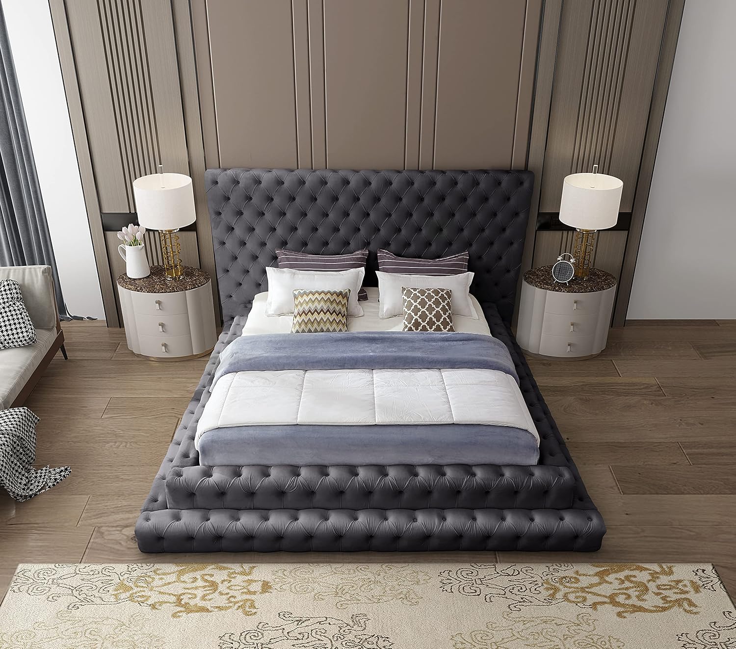 - Intricate Deep Button Tufting: Hand-like tufts add dimension and structure, evoking the refined craftsmanship found in boutique hotel suites. This design enhances the bed’s regal appearance while providing subtle contouring support.