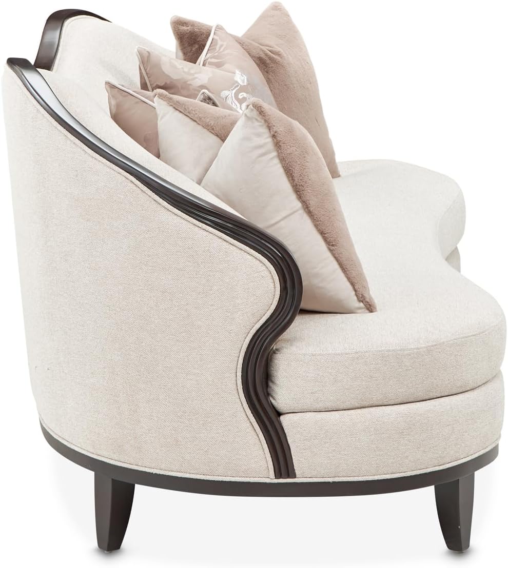 The Michael Amini Camellia Field Chenille Sofa in Linen/Warm Pecan embodies refined comfort and contemporary elegance, designed as a statement piece for modern living spaces. Crafted with meticulous attention to detail, this sofa blends luxurious materials with thoughtful design to create a centerpiece that enhances both aesthetics and functionality. The soft chenille upholstery delivers a velvety texture that is gentle to the touch and adds warmth to any room, while its gracefully curved back introduces a sculptural element that draws the eye and invites relaxation. Accompanied by a curated selection of decorative pillows, the sofa achieves a cohesive look that balances style and comfort. Whether placed in a formal lounge, family room, or cozy reading nook, the Camellia Field adapts seamlessly to various interior themes, making it an ideal choice for homeowners seeking furniture that makes a lasting impression.