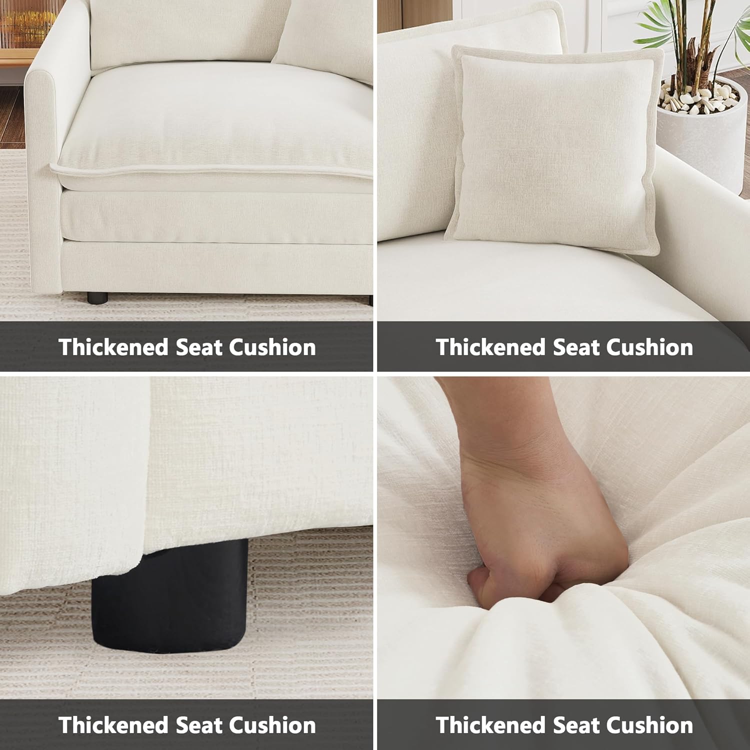 Thickened Seat Cushion: The thick cushioned seat allows you to sit for a long time without getting tired, with zippers for cleaning—compatible with vacuum cleaners or dry cleaning services. This ensures your sofa stays fresh and comfortable over time.