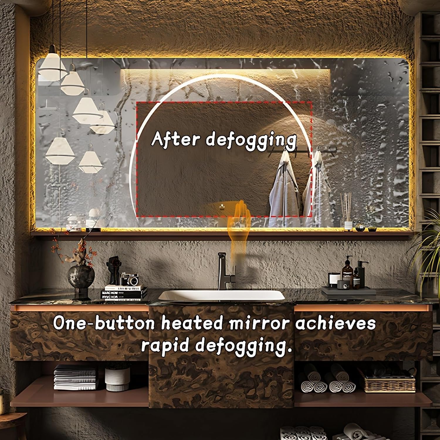 The anti-fog mirror is particularly beneficial in master bathrooms or en suites where steam from showers lingers for extended periods. Unlike traditional mirrors that become obscured, this one maintains clarity, allowing for precise grooming tasks. The motion sensor light enhances nighttime usability—turning on instantly when you enter the room and off when you leave—without requiring manual switches.