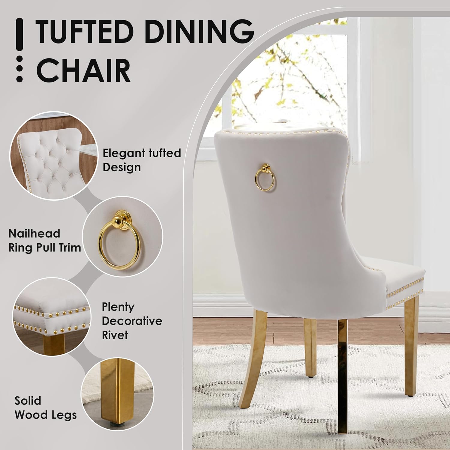 Each chair’s ergonomic curve and soft cushioning offer comfort for extended dining experiences, whether hosting family dinners or entertaining guests. The beige velvet fabric complements a wide range of interior color schemes, adding warmth without sacrificing style.