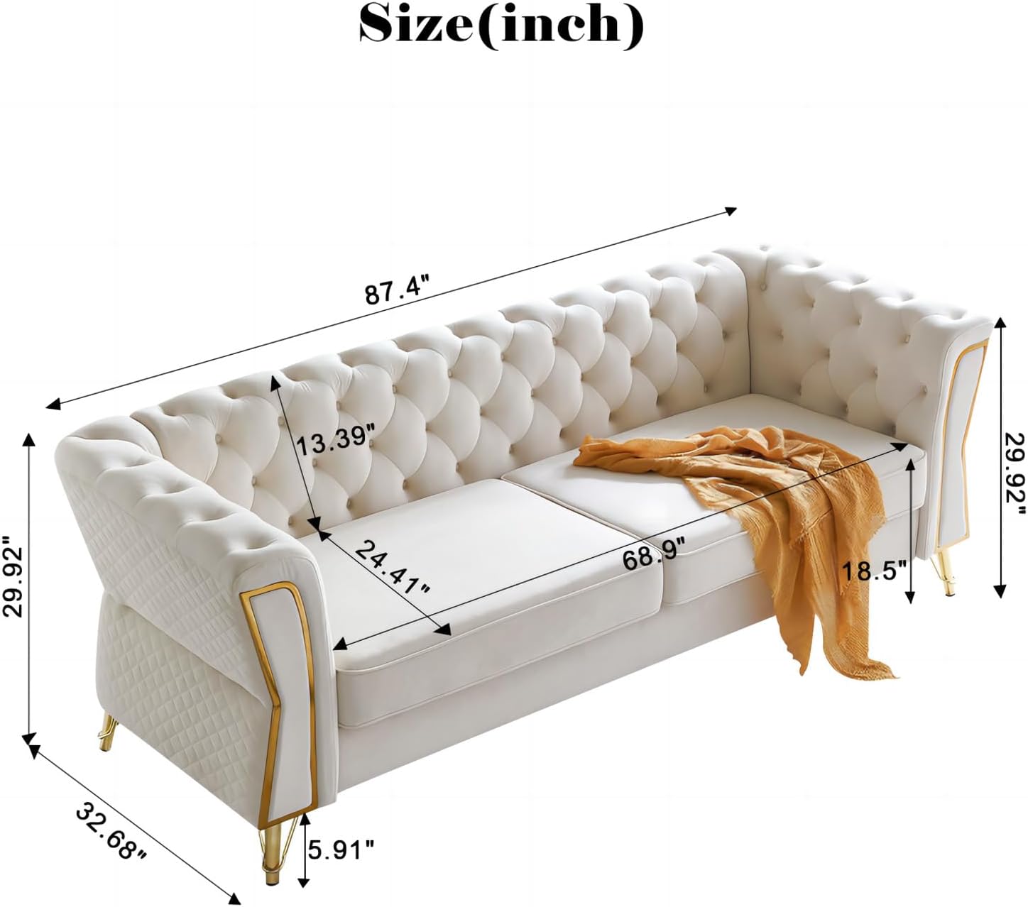 This Modern Velvet Sofa Couch redefines living room elegance with its striking combination of luxurious materials, contemporary design, and functional comfort. Designed for discerning homeowners and renters alike, this 87.4-inch-long sofa blends high-end aesthetics with practical usability. Featuring rich velvet upholstery, a tufted button-back design, and gleaming golden metal legs, it transforms any space into a sophisticated retreat. Whether placed in a minimalist apartment or a traditional lounge, the sofa’s bold yet timeless style enhances interiors with its vibrant presence and refined craftsmanship.
