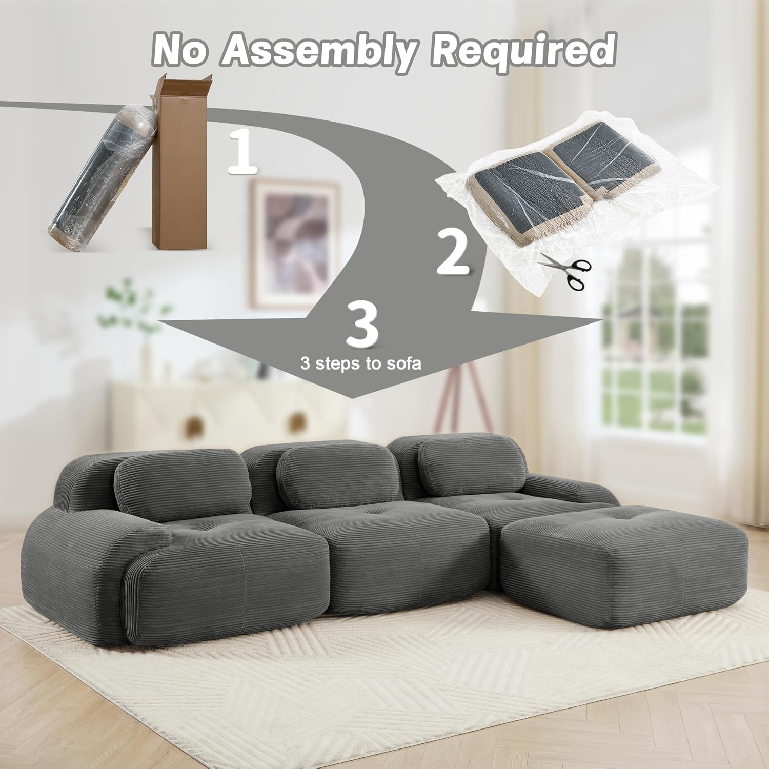 This modular sectional sofa redefines comfort and adaptability in modern home furniture. Designed with a boneless construction and high-resilience sponge foam, it delivers deep, supportive seating that maintains its shape through years of daily use. The oversized L-shaped layout includes a curved ottoman that enhances leg support, helping you sink into relaxation without the discomfort of prolonged sitting. Crafted from premium corduroy upholstery, the fabric feels luxuriously soft to the touch while remaining durable, stain-resistant, and pilling-resistant—ideal for homes with pets or active families.