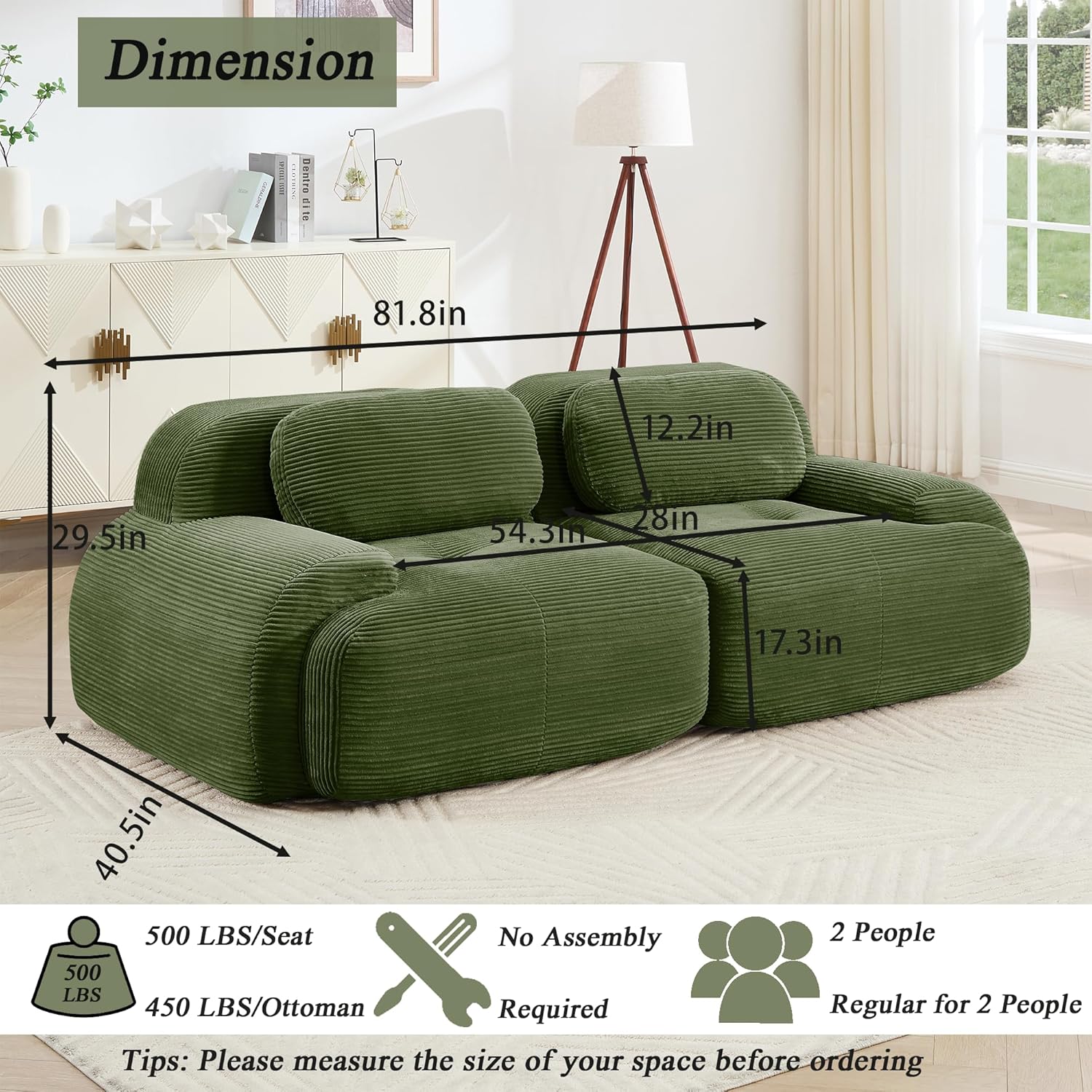 This modular sectional sofa redefines comfort and flexibility in home furniture, offering a luxurious yet practical seating solution for modern living. Designed as a boneless couch with no internal wooden frames, it delivers exceptional support through high-density foam construction that retains its shape over time. The cloud-like seating experience is enhanced by soft corduroy upholstery, making it ideal for both relaxation and entertaining. Whether placed in a small apartment, studio, or shared living space, this 82-inch loveseat configuration combines style, durability, and adaptability to suit any layout.