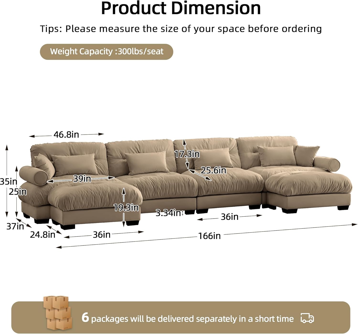 Modular Sectional Sofa Oversized Sectional Couch, 166″