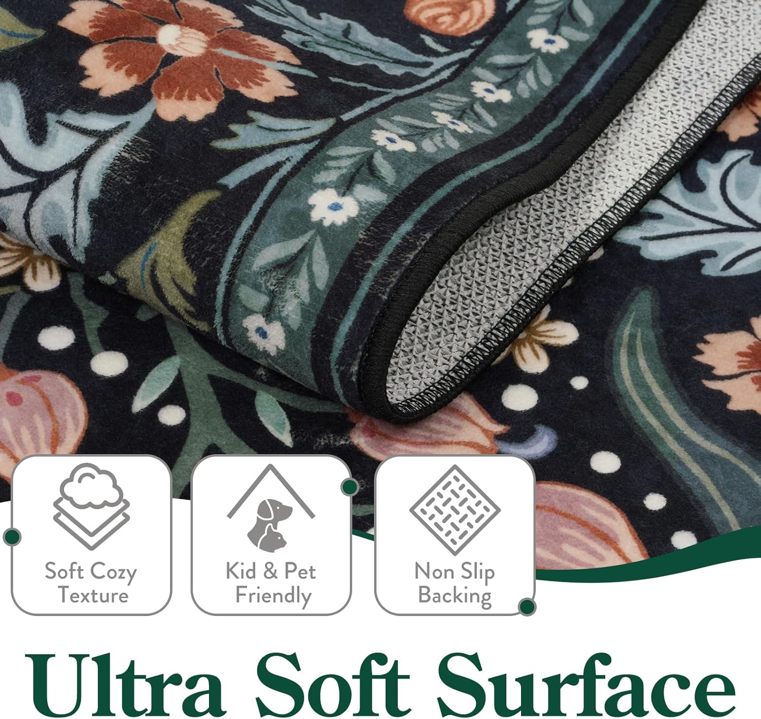 We’re a fan of washable rugs in our house, because they’re much easier to care for than traditional rugs are. Add in that we have pets, and thanks to having a lot of machine washable rugs, we’re able to ensure our house always smells fresh because we can just toss these into the machines.This rug in particular is absolutely stunning. The William Morris inspired pattern in green is so gorgeous that it’s hard to believe this is a washable rug. We’re having a hard time deciding where to place this, as it works with a lot of our decor in multiple rooms. I laid it out in the dining room, then moved it to the living room, and now we’re considering bringing it into one of the bedrooms. The colors are rich and the pattern is crisp. The rug is very thin, which is common for washable rugs, and it’s super easy to vacuum.It arrived folded, but I’ve found that unfolding it and then rolling it pattern side out and leaving it for a few days will help get the worst of the creases out and allow it to lay down easier. The rug stays in place on our hardwood floors pretty well, but due to having pets, we are using rug grips underneath on the corners to prevent any slipping thanks to our cats and their zoomies.Everyone who’s seen this rug in person is shocked that it’s machine washable, it looks absolutely stunning once it’s laid down.