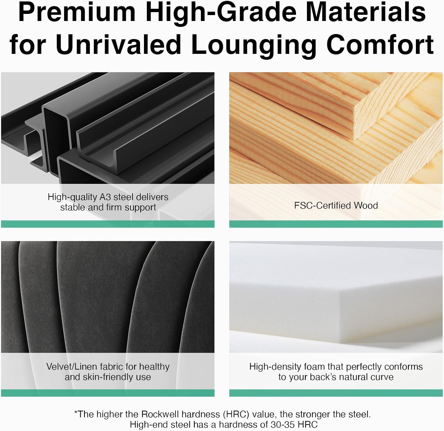 - Frame Material: High-grade wood and metal with velvet upholstery