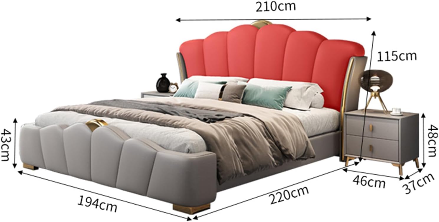 - Frame Material: Genuine Leather Upholstery (Headboard & Panels)