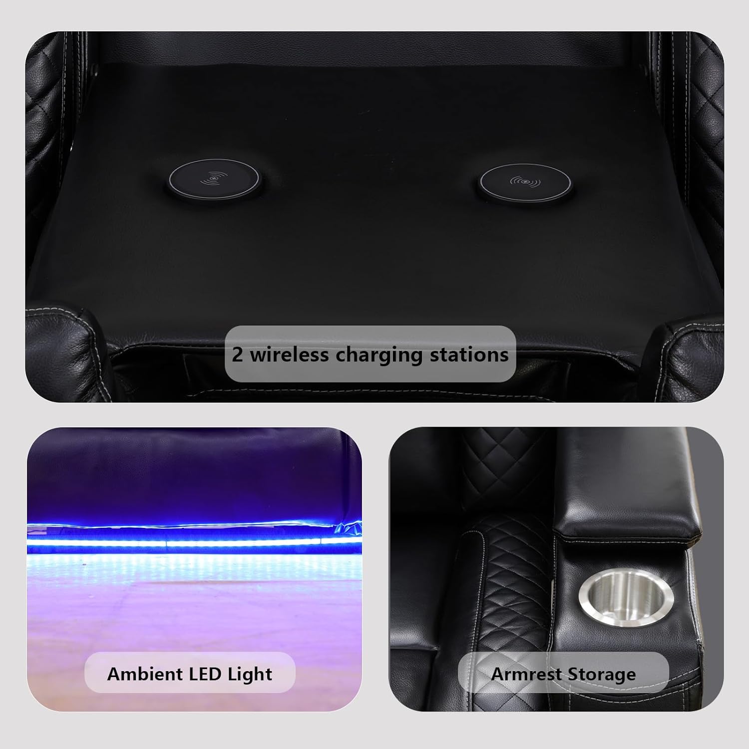 • LED Ambient Lighting (Optional Feature): Some models include soft LED lighting along the base or under the armrests, enhancing ambiance during evening relaxation or low-light viewing.